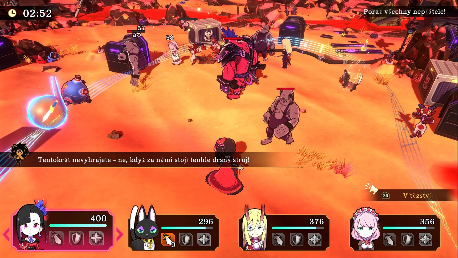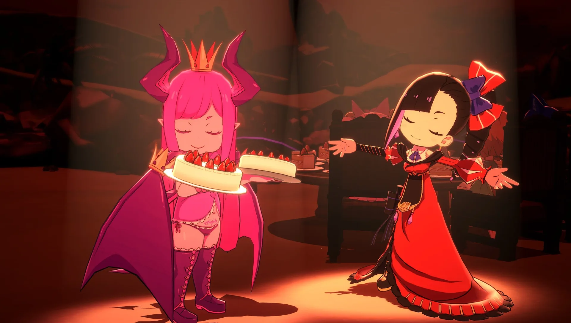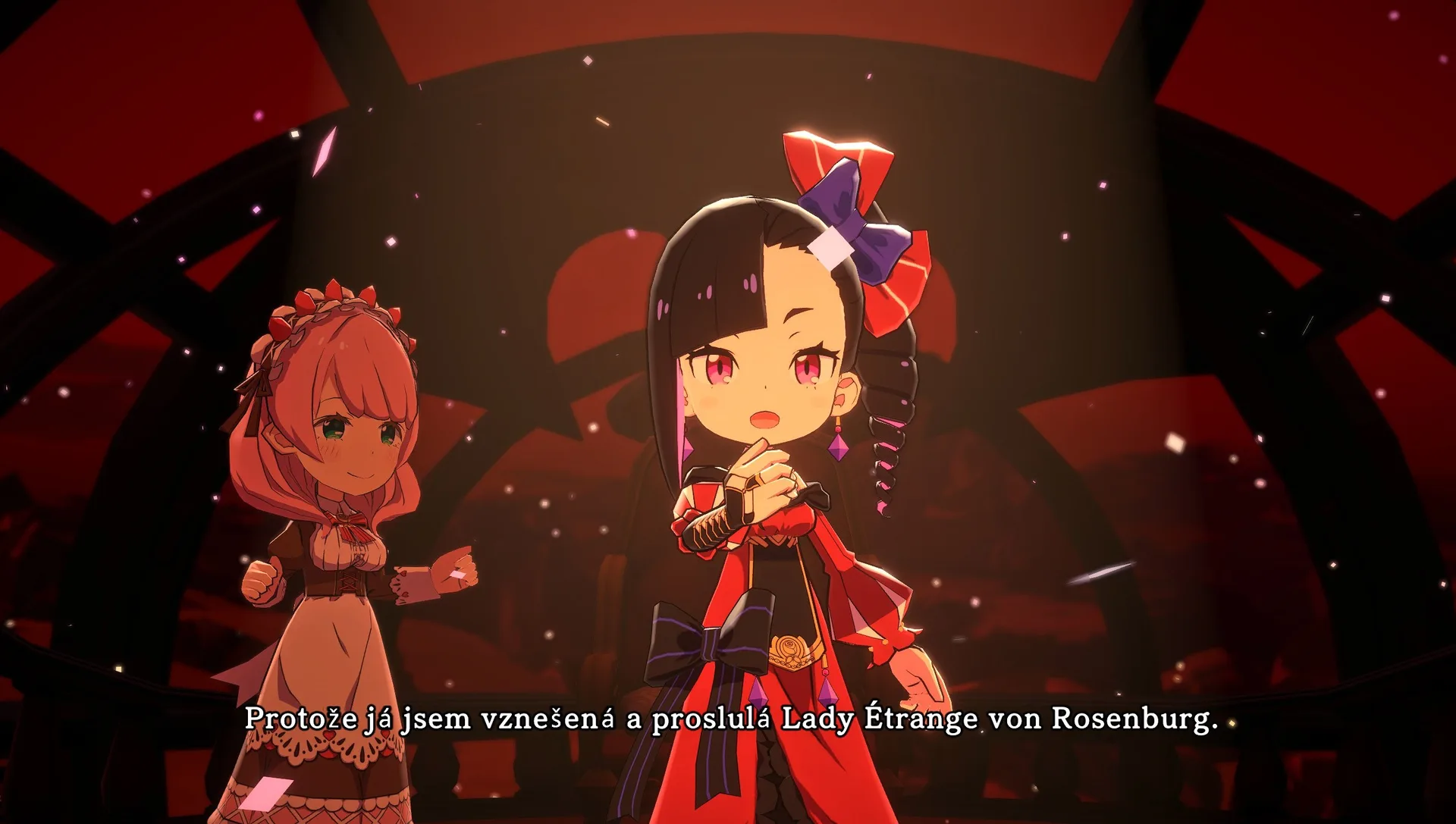 Co dává hře její nezaměnitelnou duši a pomáhá překonat i ty nejnáročnější pasáže, je její částečné muzikálové pojetí. Nejde jen o náhodný doplněk. Muzikál je do hry vpleten jako organická součást vyprávění i herního světa. Klíčové příběhové momenty, konfrontace s hlavními antagonisty nebo zásadní zvraty jsou prezentovány formou vtipných a skvěle zrežírovaných hudebních čísel, která často plynule navazují na dění na obrazovce. Étrange a její společníci v těchto pekelných áriích naplno projevují svůj charakter – od arogantních proslovů o nadřazenosti čaje až po komické výstupy poražených nepřátel. Celá hra je těmito hudebními motivy prostoupena a soundtrack od Tenpei Sata, který geniálně míchá metalové riffy s orchestrální majestátností, diktuje zběsilé tempo soubojů. To z Etrange Overlord dělá jeden z nejstylovějších titulů poslední doby, kde hudba není jen kulisou, ale tlukoucím srdcem celého vašeho tažení.