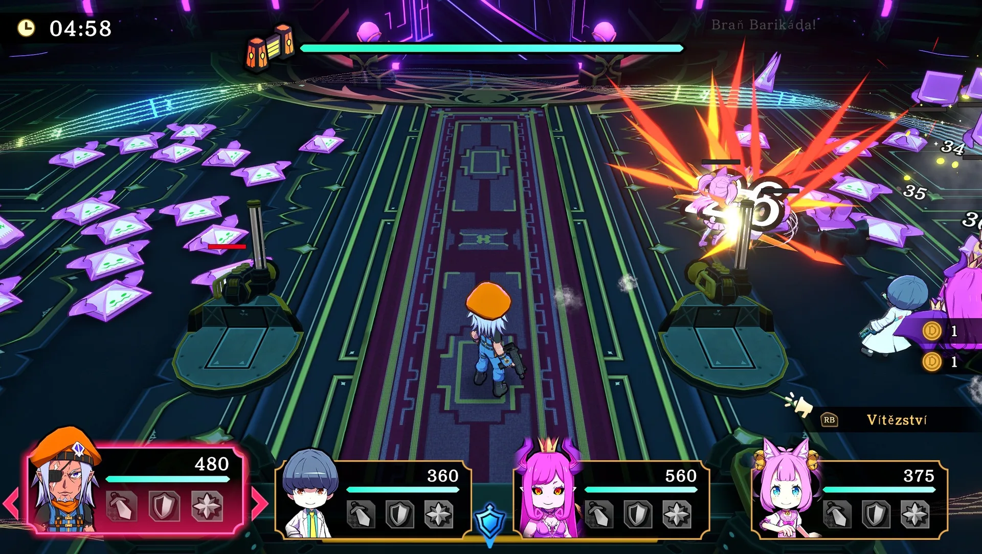 Tím největším triumfem je fakt, že Peklo je jen odrazový můstek. Jakmile si Etrange podmaní podsvětí, hra provede radikální řez a přesune se do Nebeské Sféry. Tento přechod není jen kosmetický, je to i částečná změna pro vaší strategii. Vizuálně se hra změní ze špinavého a temného podzemí na oslepující bílé paláce a létající ostrovy. Herně však s tímto vizuálním pročištěním přichází i určité vystřízlivění. Zatímco v Pekle stačilo hordy démonů víceméně přímočaře "usekat“, andělské legie v oblacích představují úplně jinou ligu. Jsou organizované a arény jsou doslova prošpikované interaktivními mechanismy. Právě zde se naplno ukazuje skutečná hloubka systému Revolving Lane, ze kterého se stává kritická logistická tepna celého bojiště. Už nejde jen o náhodné zobání bonusů. V Nebi musíte z rotujícího okruhu v pravý čas vylovit specifické předměty a doručit je k neaktivním zařízením na mapě. Teprve jejich aktivací si otevřete cestu dál nebo získáte šanci oslabit jinak nezranitelné bossy. Tato nutnost úzké spolupráce s prostředím se sice v náznacích objevuje už v pekelných okruzích, ale v nebeských výšinách se mění v nekompromisní podmínku.