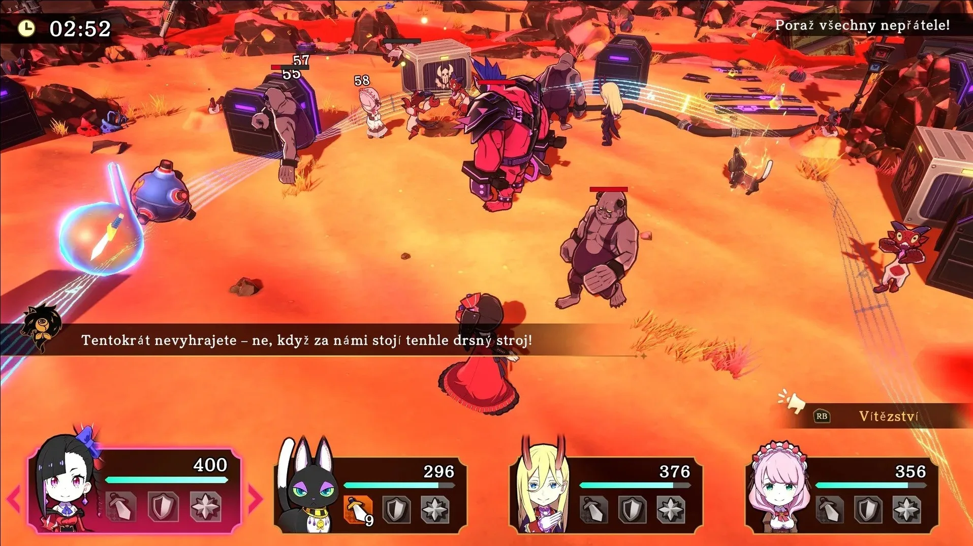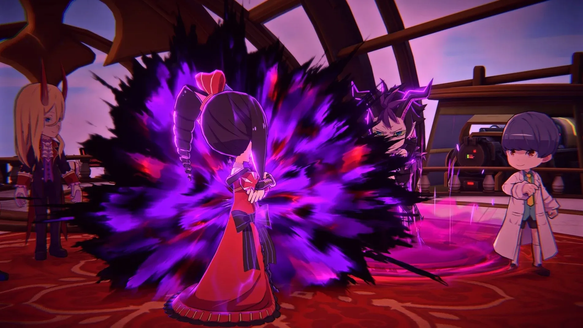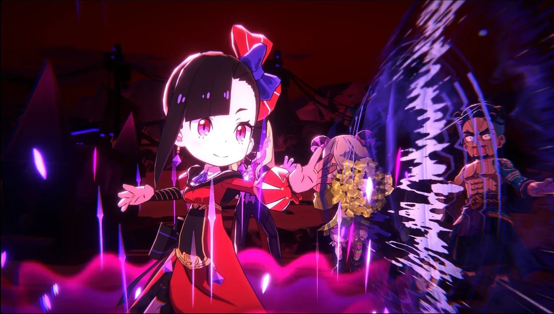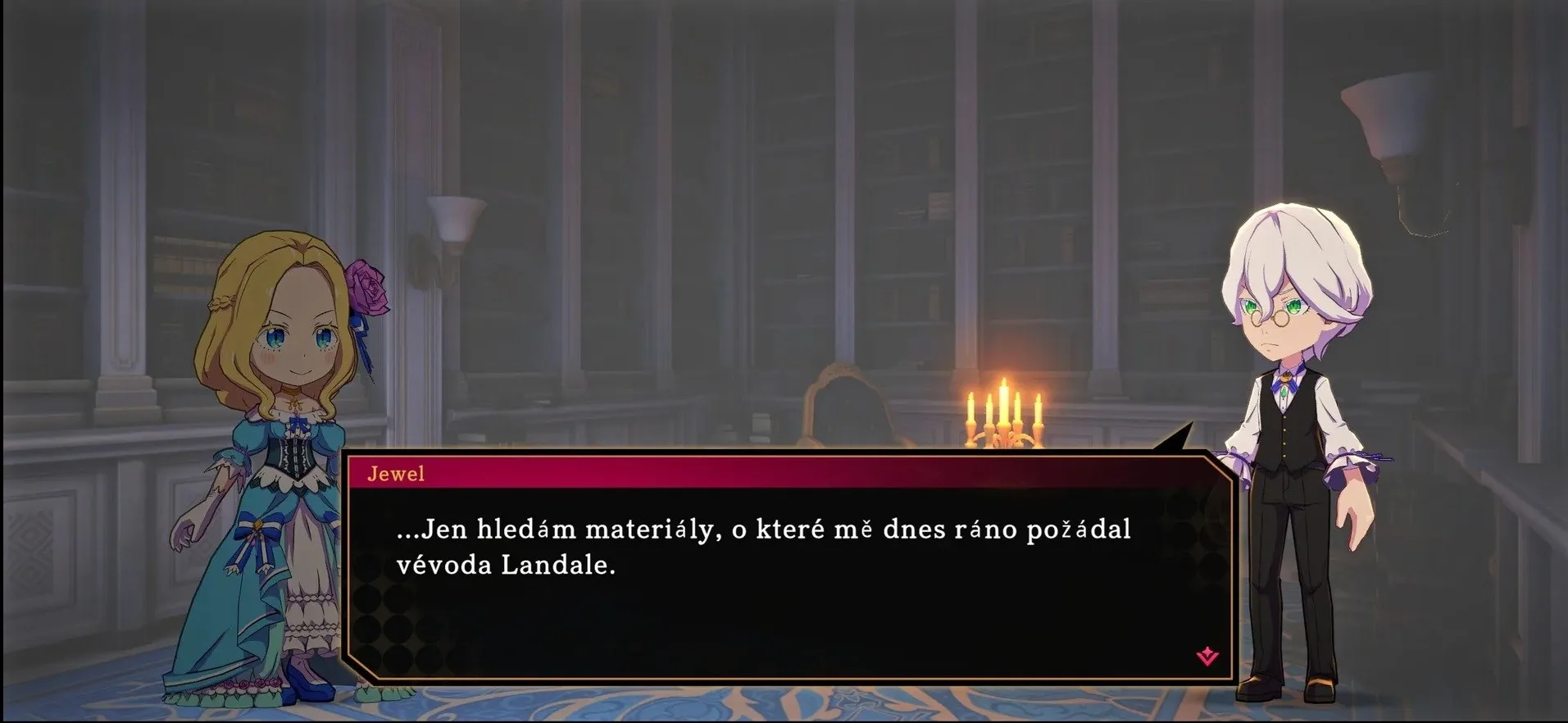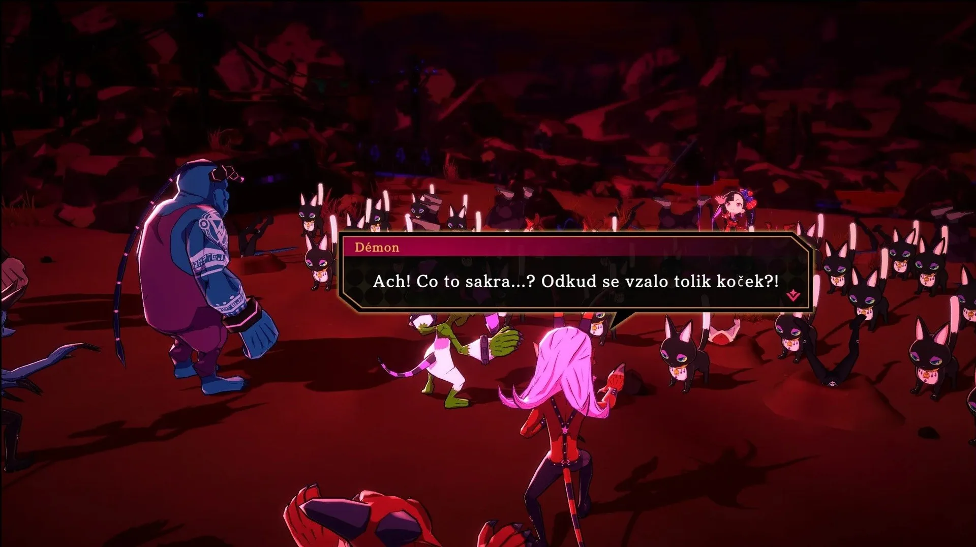 Co dává hře její nezaměnitelnou duši a pomáhá překonat i ty nejnáročnější pasáže, je její částečné muzikálové pojetí. Nejde jen o náhodný doplněk. Muzikál je do hry vpleten jako organická součást vyprávění i herního světa. Klíčové příběhové momenty, konfrontace s hlavními antagonisty nebo zásadní zvraty jsou prezentovány formou vtipných a skvěle zrežírovaných hudebních čísel, která často plynule navazují na dění na obrazovce. Étrange a její společníci v těchto pekelných áriích naplno projevují svůj charakter – od arogantních proslovů o nadřazenosti čaje až po komické výstupy poražených nepřátel. Celá hra je těmito hudebními motivy prostoupena a soundtrack od Tenpei Sata, který geniálně míchá metalové riffy s orchestrální majestátností, diktuje zběsilé tempo soubojů. To z Etrange Overlord dělá jeden z nejstylovějších titulů poslední doby, kde hudba není jen kulisou, ale tlukoucím srdcem celého vašeho tažení.