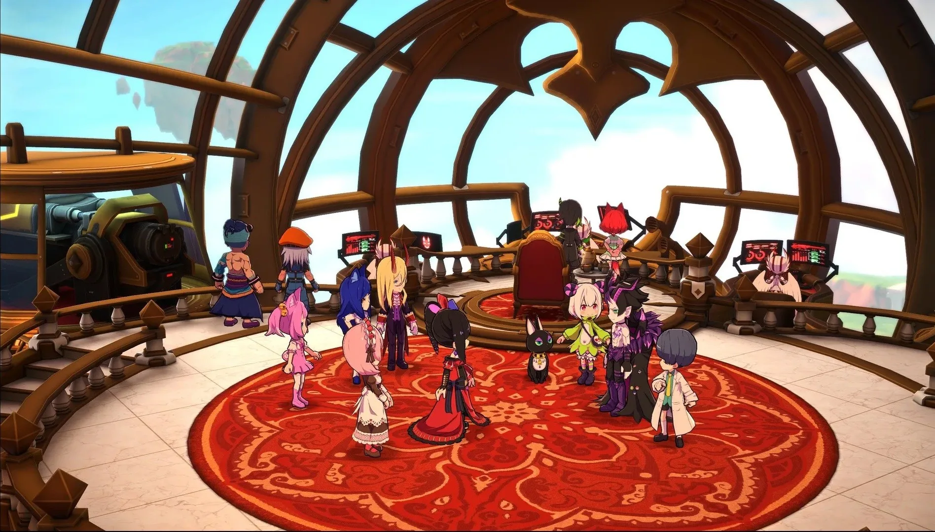 První polovina hry se odehrává v šesti částech samotného Pekla. Vaše základna, obří mobilní pevnost Macaron, se postupně plní bizarními postavami. Management surovin je zde klíčový. Možnost vaření, zde není jen pro okrasu. Různé druhy pochutin vám poskytují dočasné bonusy v další misi. Můžete tak například zajistit, že první hrdina v týmu (vůdce party) získá pro příští výpravu +20 HP nebo zvýšenou odolnost proti konkrétnímu typu poškození. Tento systém vás tak nutí přemýšlet dopředu. Pokud víte že v další misi budetečelit andělským střelcům, uvaříte si jídlo, která vašemu tankovi dočasně zvýší obranu proti projektilům. Jakmile mise skončí, účinek vyprchá a vy musíte znovu taktizovat u plotny. Kromě samotného vaření však Macaron slouží jako živoucí organismus vaší výpravy. Každá z více než 15 postav, které během své cesty rekrutujete, má na palubě své specifické místo. Nejde však jen o pasivní bonusy, klíčem k rozvoji vaší základny je aktivní průzkum pekelných i nebeských oblastí. Právě v terénu totiž nacházíte nové recepty na sladkosti a odemykáte vedlejší cutscény. Tyto střípky příběhu a kuchařského umění, které posbíráte během misí, následně ožívají právě v prostorách pevnosti Macaron. Dokreslují motivaci vašich společníků sloužit tak nesnesitelné, a přesto fascinující šéfové, jakou je Étrange, a zároveň vám dávají do rukou silnější nástroje pro přípravu na další střet. Správa surovin se tak stává neustálým balancováním mezi tím, co najdete na bojišti, a tím, co skutečně potřebujete k přežití. Pevnost Macaron je vaším jediným bezpečným útočištěm v nepřátelském světě, a právě kombinace pečlivého sběru receptů v terénu a následné péče o žaludky vašich bojovníků tvoří ten správný strategický protipól k zběsilé akci v arénách.