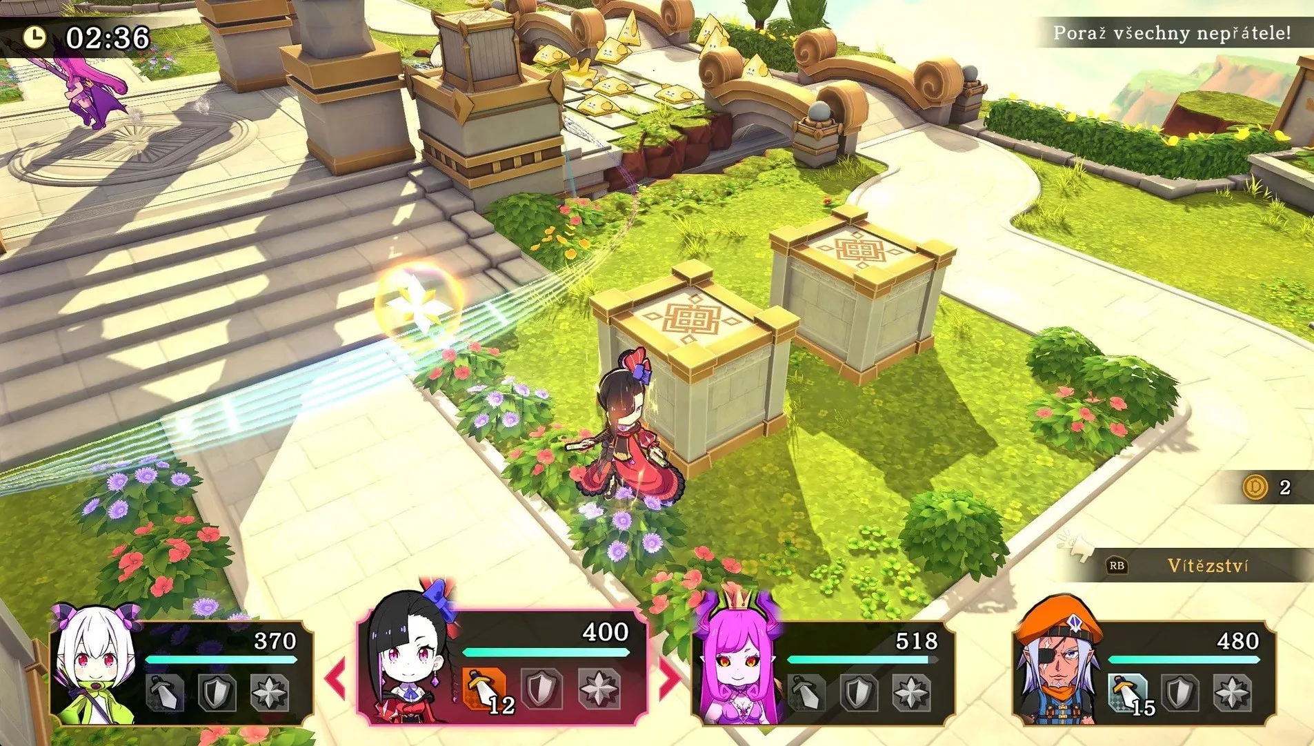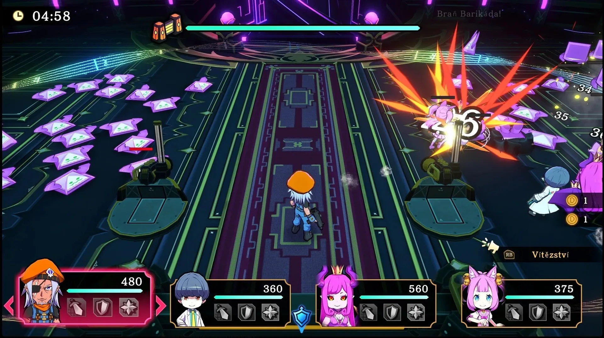 Tím největším triumfem je fakt, že Peklo je jen odrazový můstek. Jakmile si Etrange podmaní podsvětí, hra provede radikální řez a přesune se do Nebeské Sféry. Tento přechod není jen kosmetický, je to i částečná změna pro vaší strategii. Vizuálně se hra změní ze špinavého a temného podzemí na oslepující bílé paláce a létající ostrovy. Herně však s tímto vizuálním pročištěním přichází i určité vystřízlivění. Zatímco v Pekle stačilo hordy démonů víceméně přímočaře "usekat“, andělské legie v oblacích představují úplně jinou ligu. Jsou organizované a arény jsou doslova prošpikované interaktivními mechanismy. Právě zde se naplno ukazuje skutečná hloubka systému Revolving Lane, ze kterého se stává kritická logistická tepna celého bojiště. Už nejde jen o náhodné zobání bonusů. V Nebi musíte z rotujícího okruhu v pravý čas vylovit specifické předměty a doručit je k neaktivním zařízením na mapě. Teprve jejich aktivací si otevřete cestu dál nebo získáte šanci oslabit jinak nezranitelné bossy. Tato nutnost úzké spolupráce s prostředím se sice v náznacích objevuje už v pekelných okruzích, ale v nebeských výšinách se mění v nekompromisní podmínku.