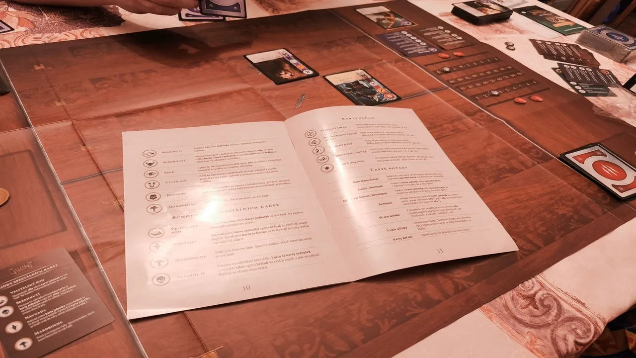 Je veľmi pozitívne, že fyzický Gwint u nás vyšiel v českej verzii. O lokalizáciu textov sa postaral Filip Ženíšek, ktorý je zodpovedný aj za českú lokalizáciu videohry. Uprednostňoval by som slovenskú lokalizáciu, no tá k dispozícii nie je. Takže môžeme byť zrejme radi aspoň za češtinu. Pravidlá sú však pomerne krátke a na samotných kartách tých textov veľa nehľadajte. Na každej karte sa nachádza nejaká myšlienka a prípadne popis schopnosti danej karty. Takže celkovo môžeme povedať, že textov tu nie je až tak veľa. O to viac však zamrzí, že v pravidlách či na kartách narazíte na chyby. Stačí si prečítať poslednú stranu na knihe herných režimov a až vás strasie. Na danej strane sú napísané/preložené také skvosty, až sa vám rozum zastaví. Chybám v pravidlách sa dá odpustiť, no viac zarážajúce sú chyby na viacerých kartách, kde nesedí pomenovanie kariet či schopností a vy tak môžete hľadať kartu, ktorá neexistuje, alebo si domýšľať, ktorú to schopnosť máte uplatniť. V tomto mi pomohlo si nájsť na internete anglické karty a podľa toho si to skontrolovať. Takže suma sumarum, je pozitívne, že sme sa dočkali českej lokalizácie, no mohli si najať niekoho, kto si tú hru zahrá alebo aspoň skontroluje, než to pustia do predaja.