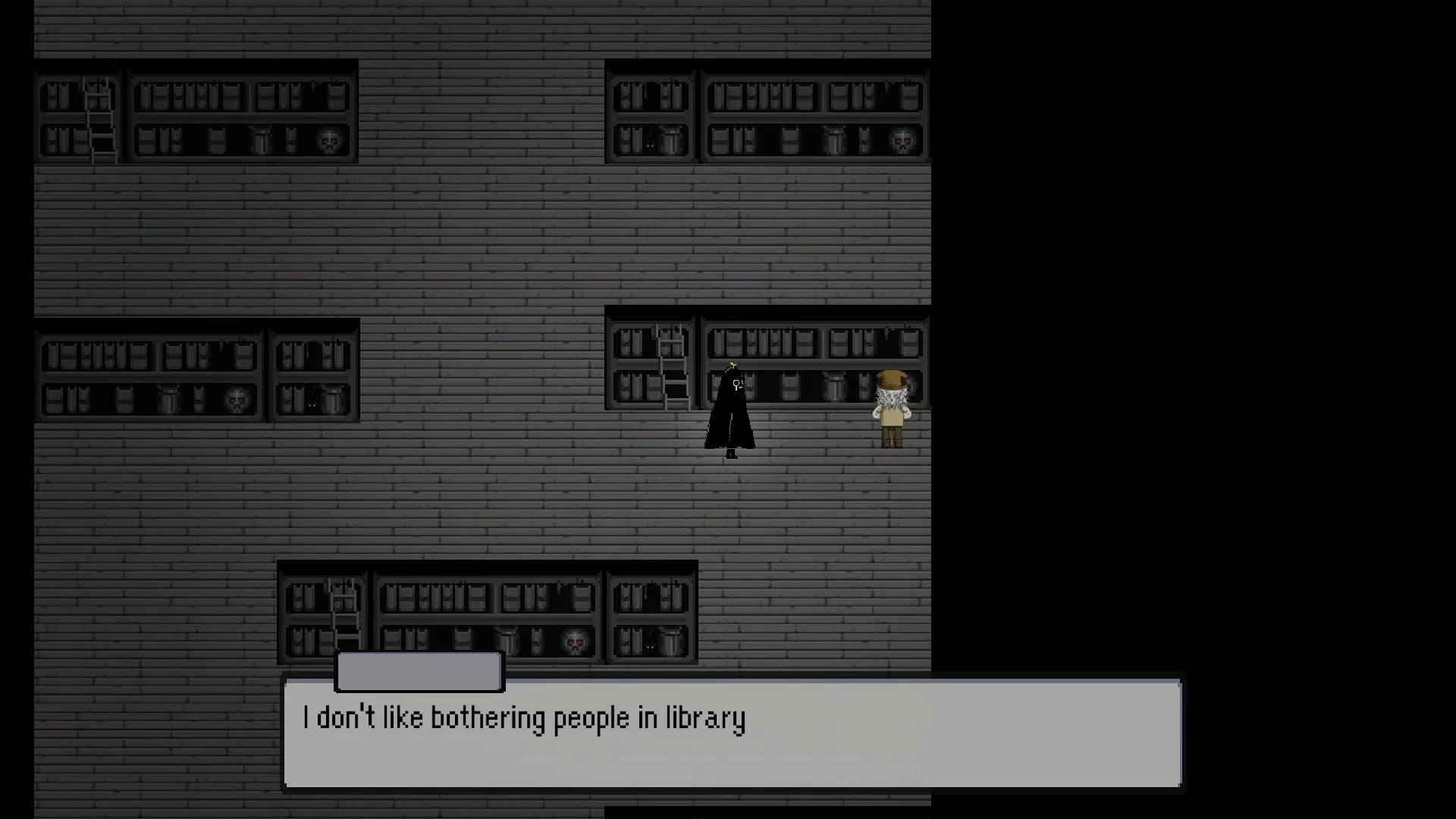Príbeh sa venuje postave, ktorú máme znázornenú ako ducha ukrytého pod čiernou plachtou. Pod ňou sa zrejme skrýva človek, pre ktorého je samota najväčším priateľom. Ľuďom sa radšej vyhýba, zbytočne ich neotravuje a žije si bezpečne vo svojej bubline. Počas návštevy knižnice, kde si chce nájsť nejakú novú knihu, však záhadne vypadne prúd, dvere von sú uzatvorené a na to, aby sme sa dostali von, budeme musieť prejsť pomedzi regály a nájsť inú cestu. Knižnica je však plná nebezpečných príšer, ktoré po vás idú. Dôležité je neprepadnúť panike a pomaly sa skúsiť navigovať jednotlivými chodbami.