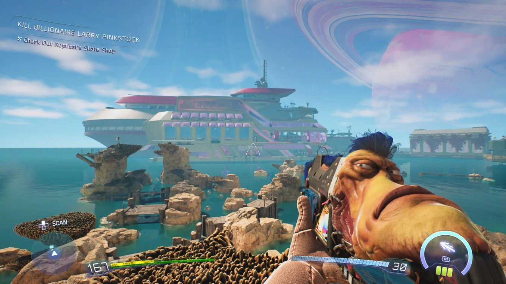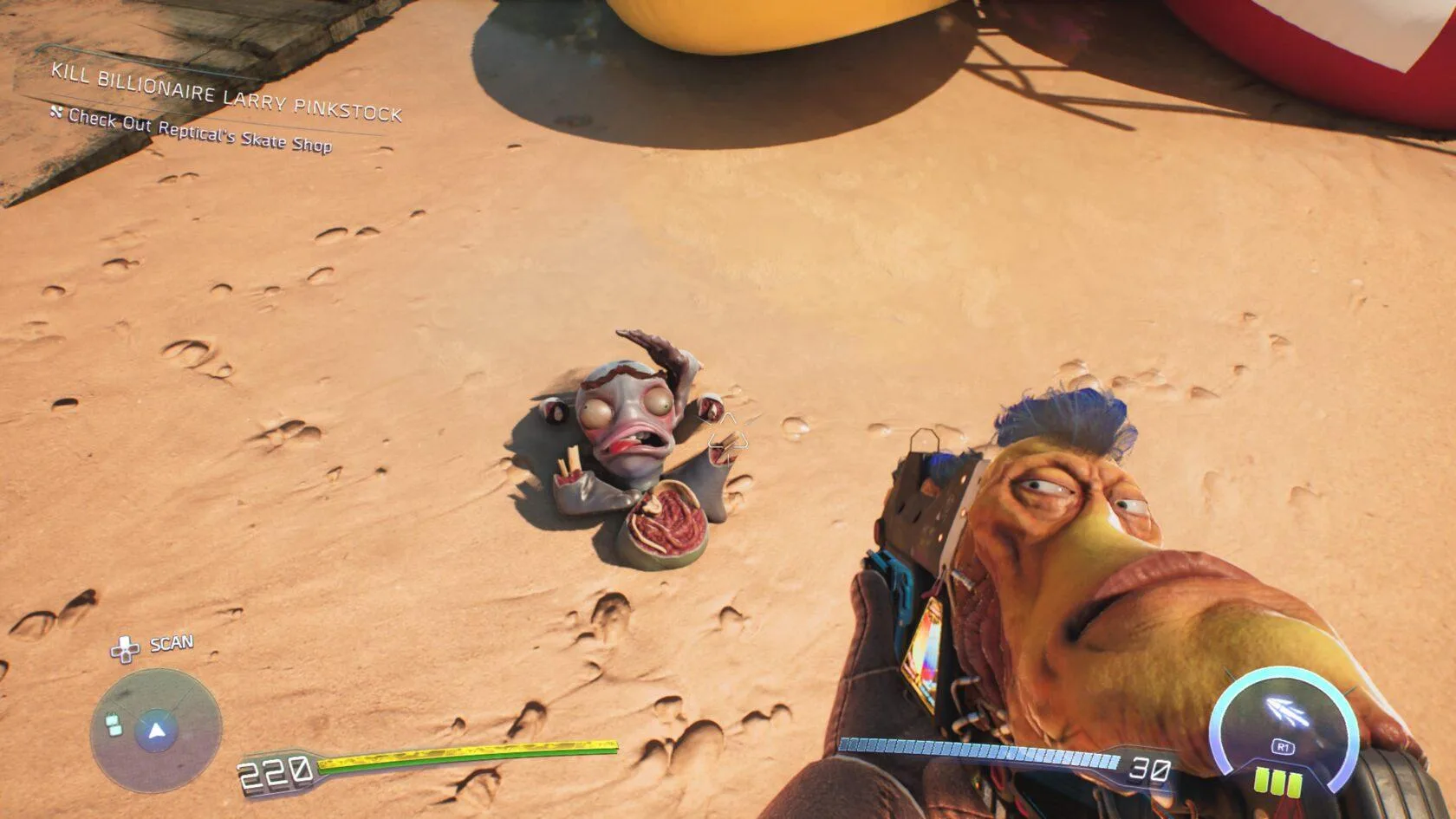 Páčilo sa mi však, že svoje miesto si našiel pri získavaní skrytých truhiel, kedy nezriedka máte za úlohu vyskákať na vyvýšenú pozíciu. Práve vtedy pôsobí implementácia nového prvku zďaleka najzmysluplnejšie. Integrácia bola pritom bezproblémová a k zvyšku tento prídavok veľmi pekne zapadol. Nehovoriac o nových pretekoch dokazujúcich, že Tony Hawk by bol z first person pohľadu absolútnou lahôdkou. Nie nadarmo má v High on Life 2 športová ikona explicitnú referenciu. Vtipné je, že pôvodne sa plánovalo mať drevenú dosku už v prvotine, akurát ju tím nakoniec vyškrtol.