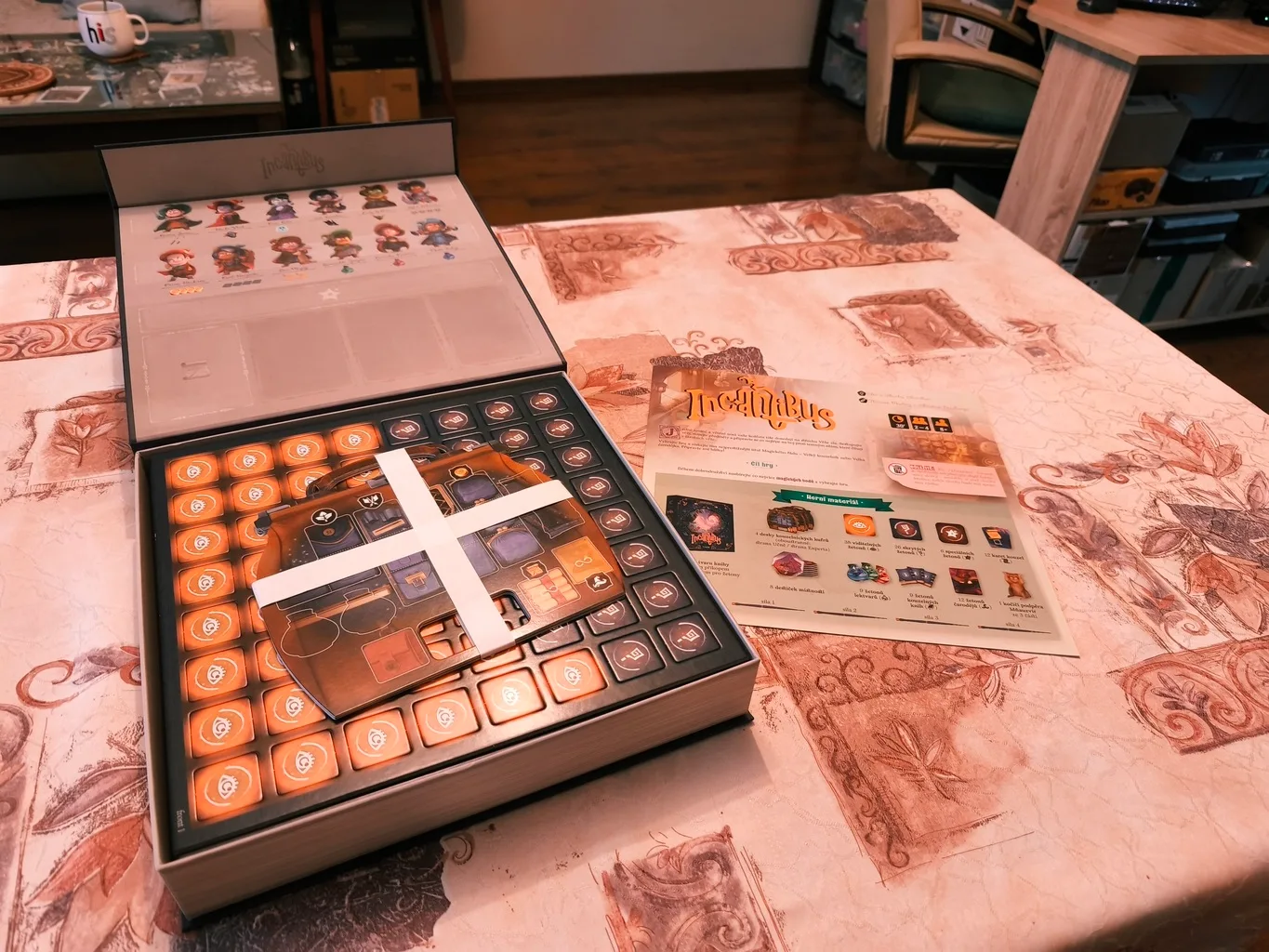 Spoločenská hra Incantibus už na prvý pohľad vyniká v zástupoch svojej konkurencie. Krabica s hrou doslova žiari, keďže názov vrátane rôznych ornamentov je pozlátený, čo dokáže upútať najmä zraky detí. Táto drobnosť však nie je jediným lákadlom tejto hry. Základ originality dizajnu spočíva v imitácii lexikónu kúzel. Krabica tak doslova navonok pripomína veľkú knihu, ktorú si otvoríte a pustíte sa do hry. Ide o pevnú kartónovú konštrukciu, ktorá ako bonus využíva magnety na zatváranie. Nápad je to vskutku zaujímavý, no na hranie si radšej pripravte trošku komornejšiu atmosféru, aby sa všetci hráči dostali s ľahkosťou k hernému obsahu. Ako hrací plán slúži primárne dno krabice, ale aj jej veko. Pri hraní je potrebné mať krabicu vodorovne, no veko sa mierne skláňa. Tento mierny neduh je však vyriešený vcelku vtipne. Môžete si ho podložiť kartónovou mačkou, ktorá slúži ako podpera.