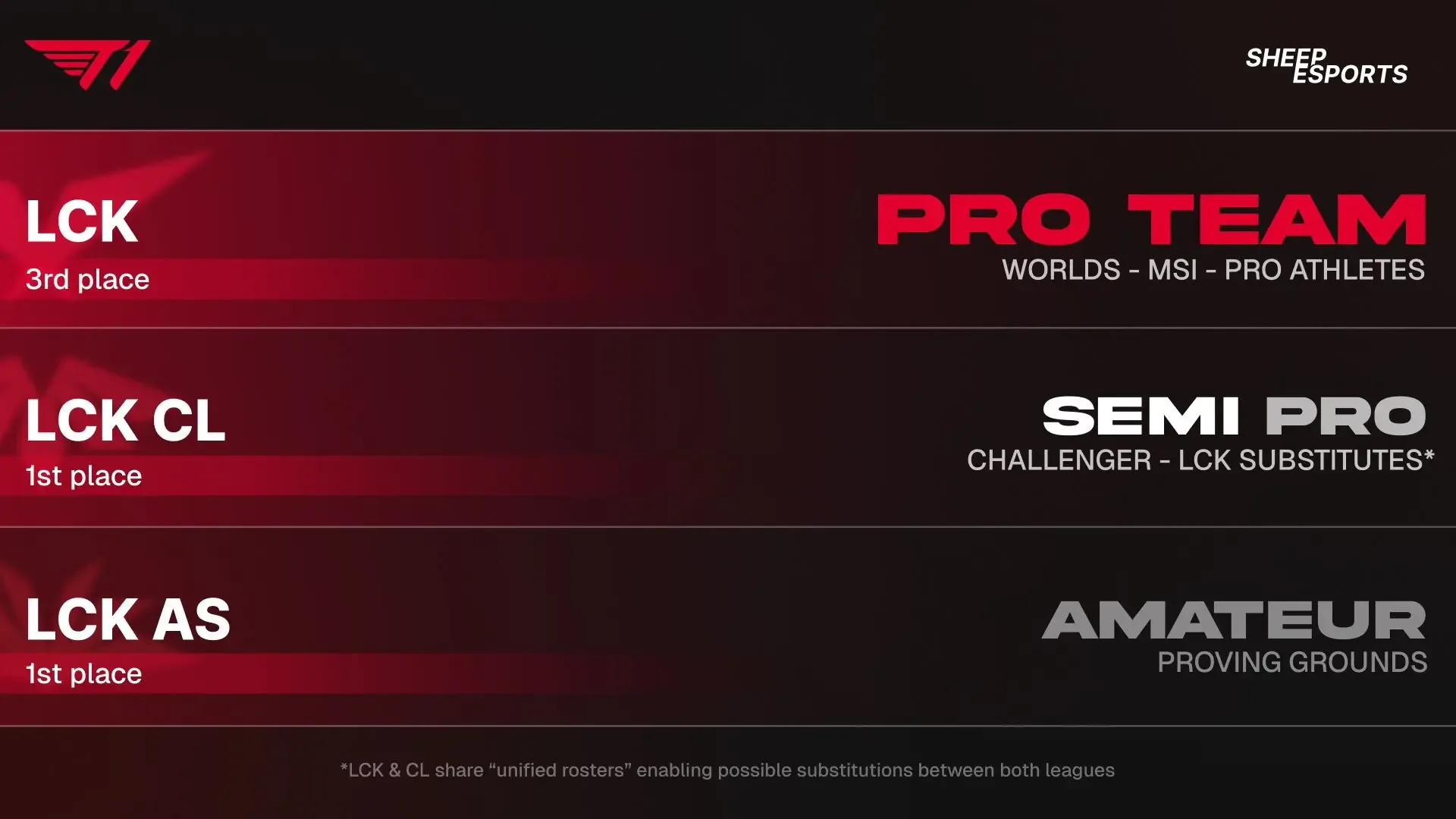 T1 dlhodobo prevádzkujú jeden z najlepších trojstupňových talentových systémov v kórejskom esportse. Na úplnom začiatku stoja mladí hráči, ktorých organizácia vyhľadá a zaradí medzi trainees na Rookies roster. Tam sa delia o pozície, trénujú proti sebe a neustále bojujú o to, kto si zaslúži ďalšiu šancu. Tí, ktorí tento tlak zvládnu, sa môžu posunúť do zostavy Challengers League. Tam už získavajú skúsenosti v oveľa profesionálnejšom prostredí, striedajú sa na pódiu, scrimujú proti tímom na vysokej úrovni a učia sa, ako premeniť mechanické schopnosti zo solo queue na tímovú hru.