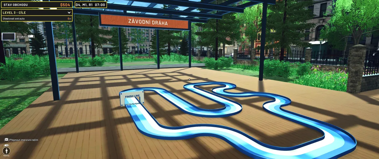Co se týče atmosféry, je Mini Racer nepochybně „comfy“ záležitostí. Grafika je příjemná a čistá, obchod i dílna působí útulně a zvukový doprovod dokresluje poklidnou náladu. Je to hra, u které si můžete odpočinout, zorganizovat si regály do posledního detailu a vychutnat si pocit z pomalu rostoucí sbírky. Proces sestavování aut a jejich následného vystavení s vlastní cenovkou je překvapivě uspokojivý a dodává celému podnikání osobní rozměr. Cítíte se nejen jako obchodník, ale i jako tvůrce.