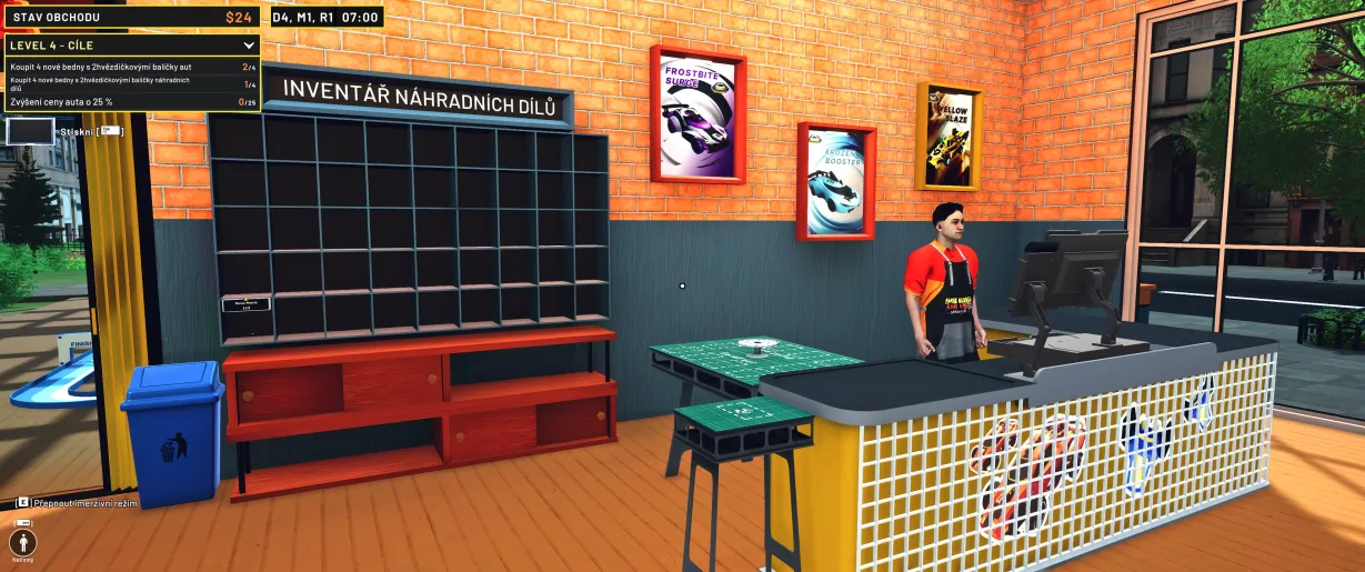 Základní myšlenka je roztomilá a jednoduchá: stanete se majitelem obchůdku s mini auty. Vaším úkolem je objednávat zboží, vybalovat krabice, plnit regály, nastavovat ceny a obsluhovat zákazníky. To vše v rámci uklidňující, cyklické smyčky, která vás pomalu, ale jistě vtáhne do svého rytmu. Hra však nejde cestou pouhého „přesouvání krabic“. Přidává do mixu silný prvek sběratelství a kreativity. Nejste jen prodavač, jste také nadšenec, který si v zadní místnosti může sestavovat a vylepšovat vlastní modely, ladit jejich výkon a vzhled, a pak je s pýchou vystavit na polici s vlastní cenovkou. Právě tato kombinace obchodního simulátoru a „garážového“ řemesla dává Mini Raceru jeho osobité