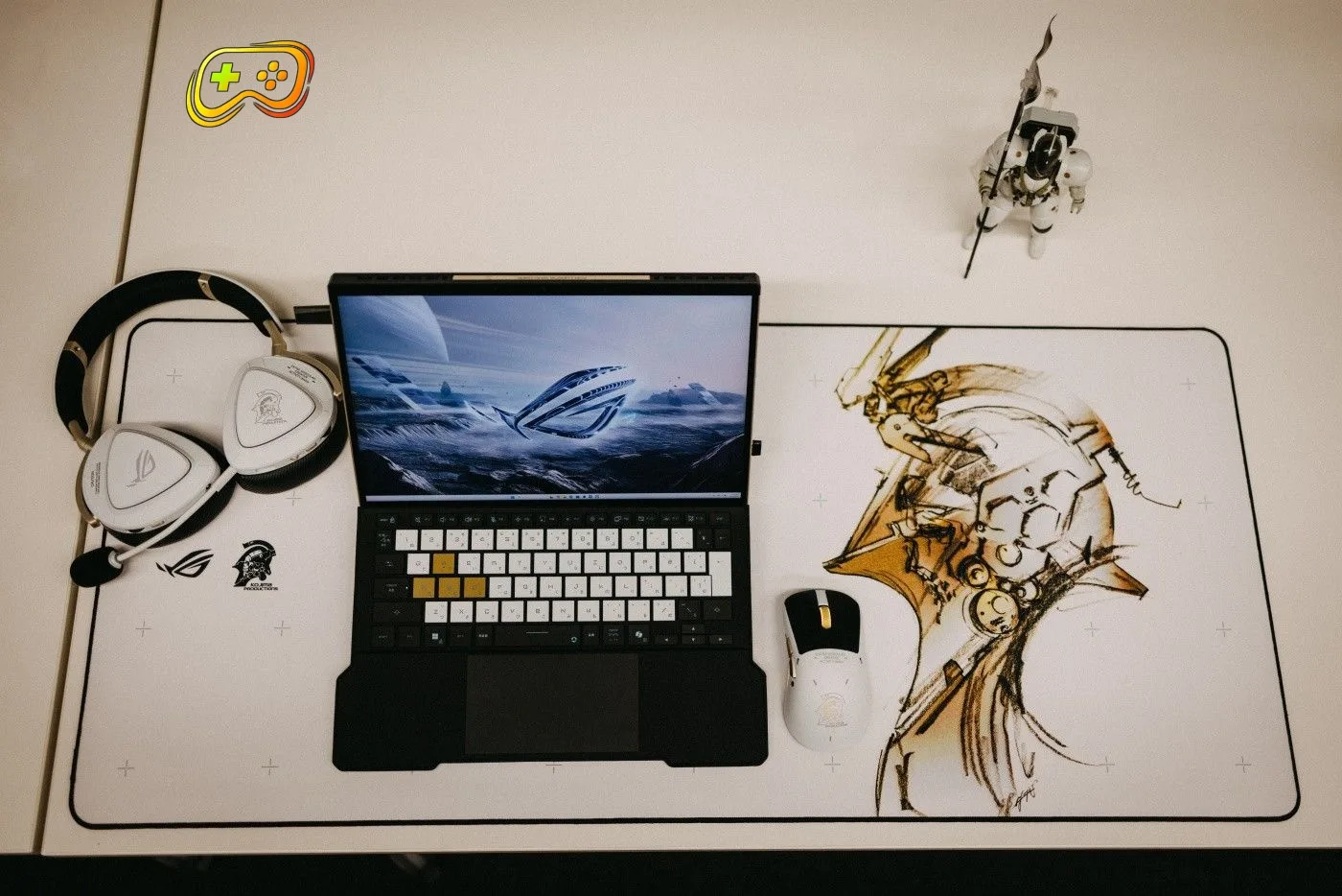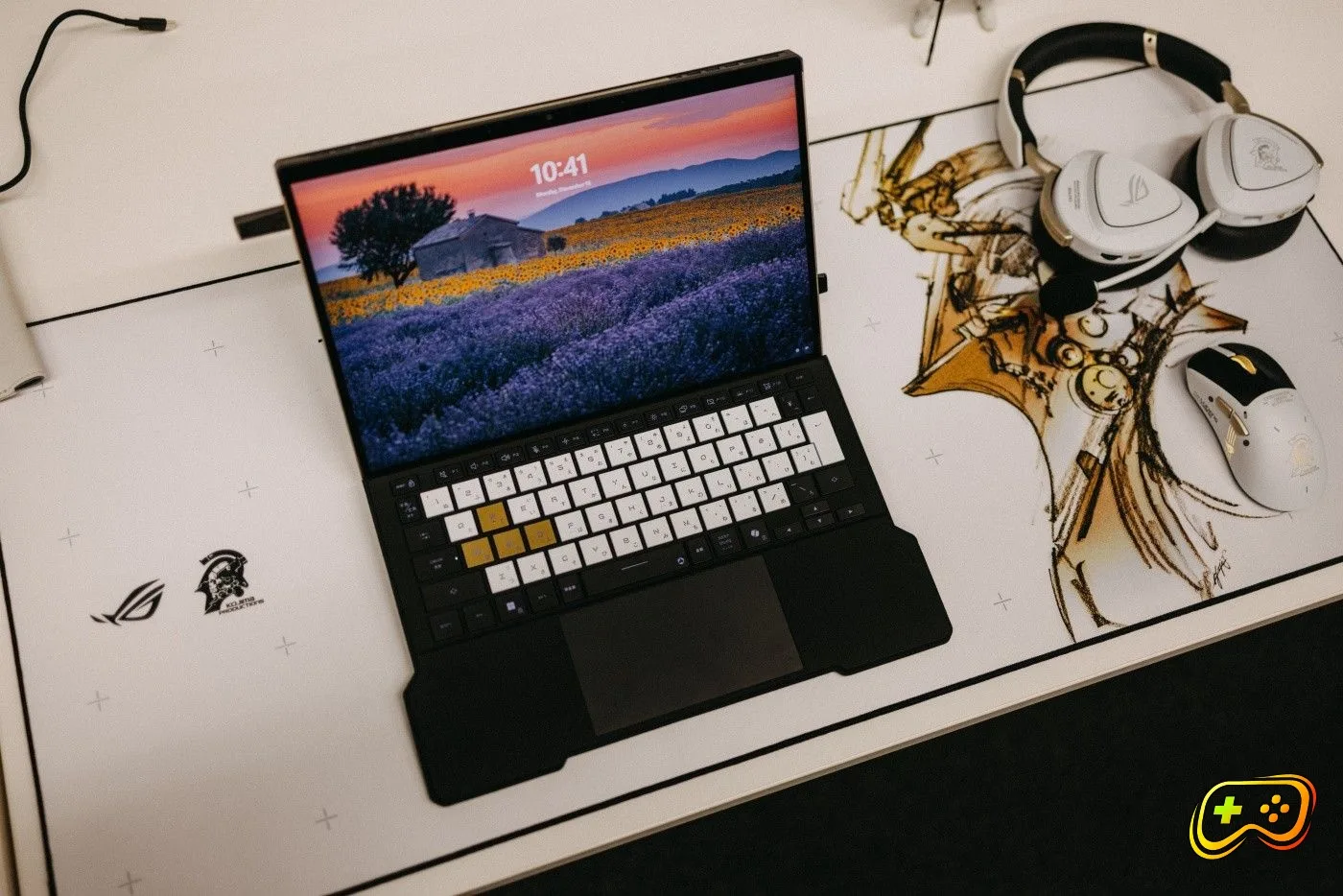 Keďže mám rád tvorbu Hidea Kojimu, pre mňa bolo v rámci hernej produkcie highlightom oznámenie spolupráce ROG s Kojima Productions. Nešlo len však iba o „papierovú spoluprácu“, na stole totiž ležalo kompletné portfólio produktov inšpirovaných Ludensom, maskotom štúdia. Motto spolupráce znie „For Ludens Who Dare“, no omnoho dôležitejšie je, že po dizajnovej stránke jednoducho predstavené kúsky fungujú na jednotku s hviezdičkou. Konkrétne tu zatiaľ máme herný tablet ROG Flow Z13-KJP, headset Delta II-KJP, myš Keris II Origin-KJP a podložku Scabbard II XXL-KJP.