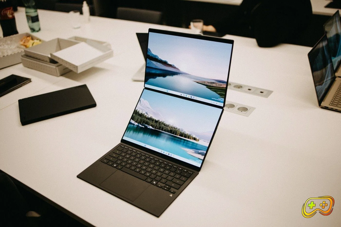 ASUS ukázal aj Zephyrus Duo, zatiaľ však len vo forme makety. Multitasking aj hráčov je to, o čo tu beží. Základom sú totiž dva 16“ 3K dotykové displeje so 120 Hz frekvenciou. Počíta s grafikou až RTX 5090, procesormi Intel Core Ultra, 64 GB RAM, 2TB SSD diskom a batériou s kapacitou 90 Wh. Konštrukcia, pochopiteľne, umožní viacero režimov použitia, takže pôde o ultimátny stroj nielen pre hráčov, ale pre hocikoho, kto bude potrebovať vysoký výkon a dostatok obrazového priestoru pre čo najvyššiu pracovnú efektivitu.