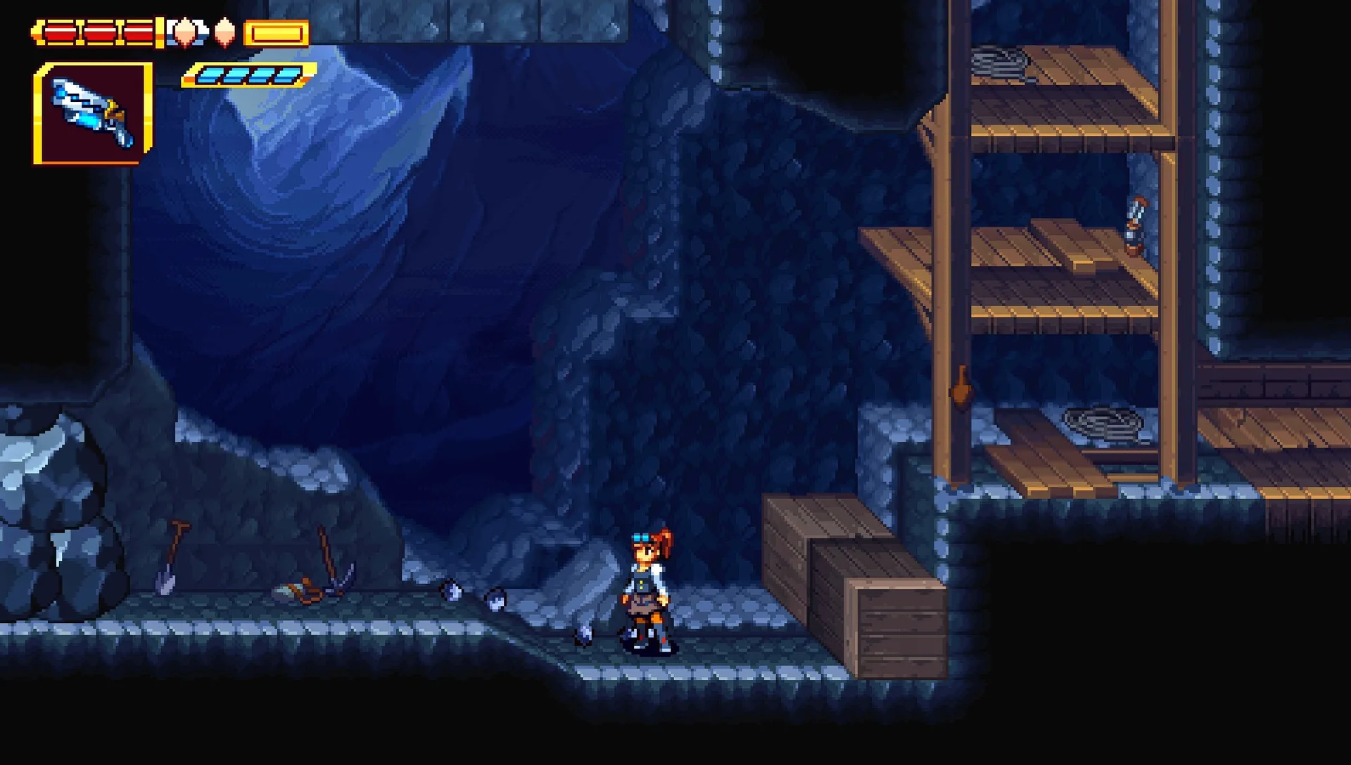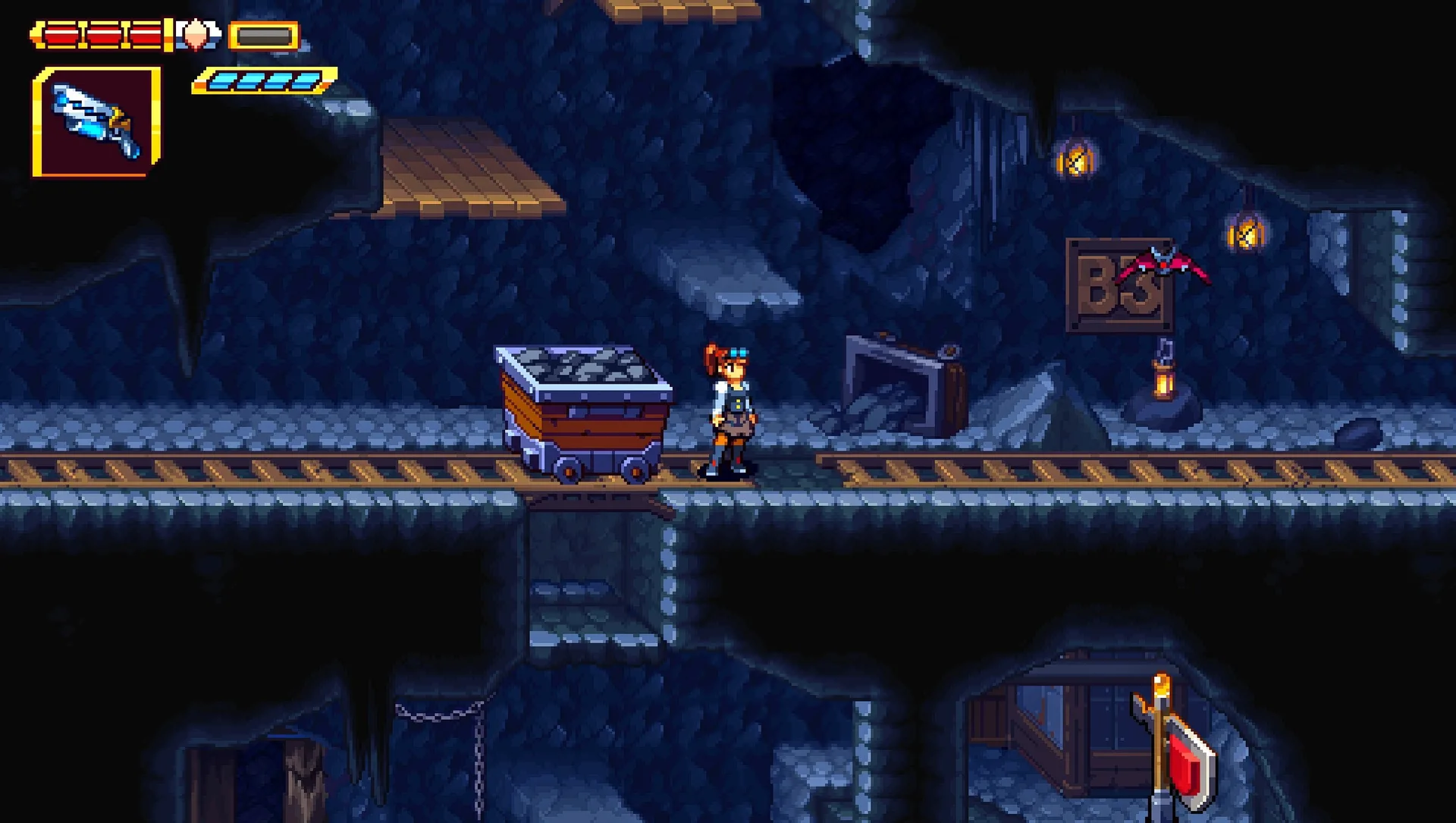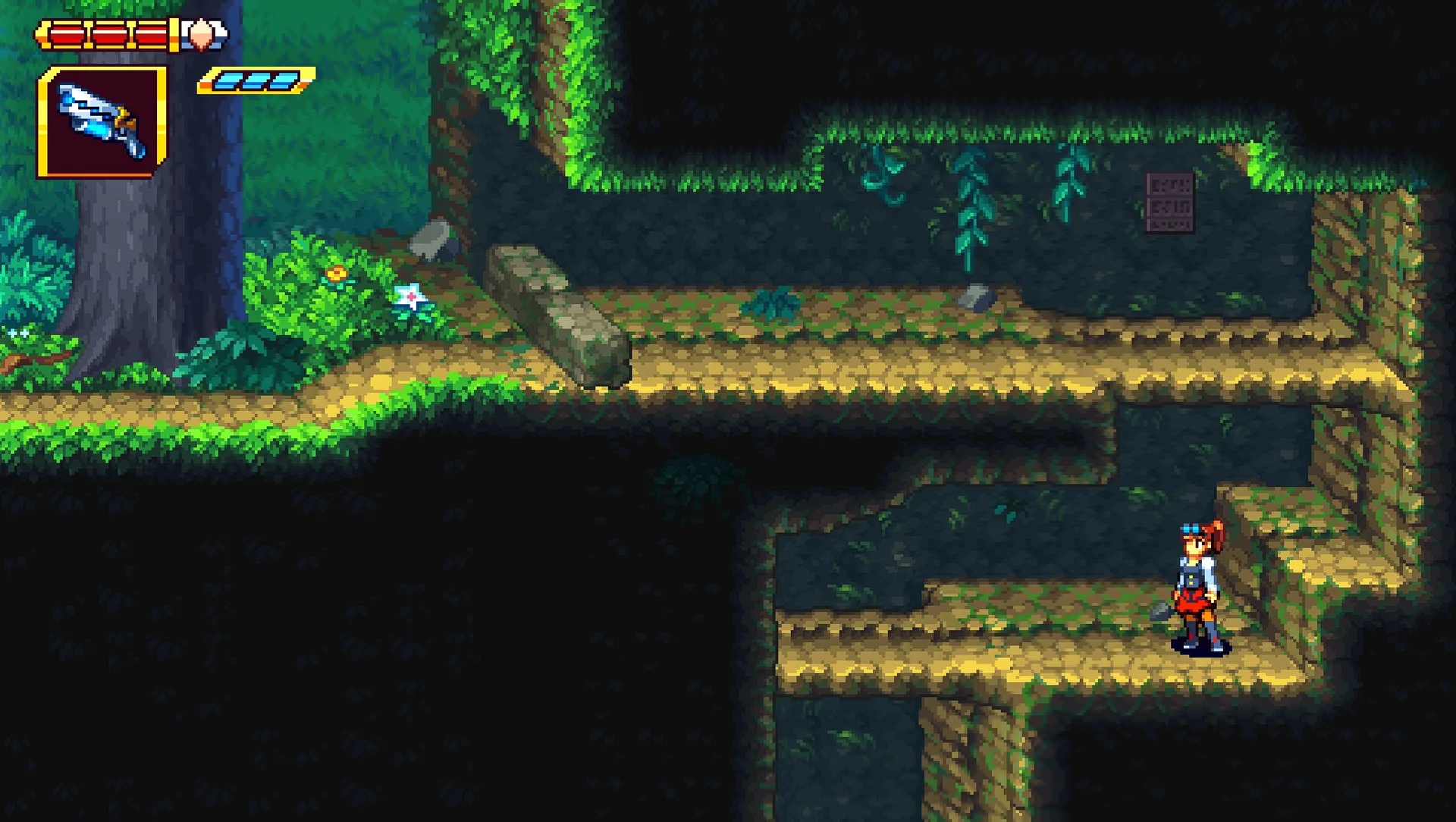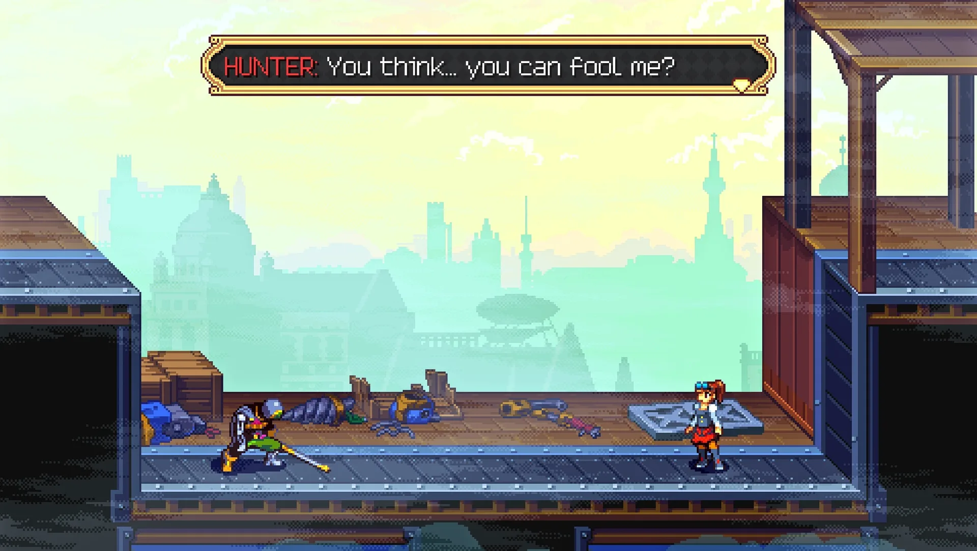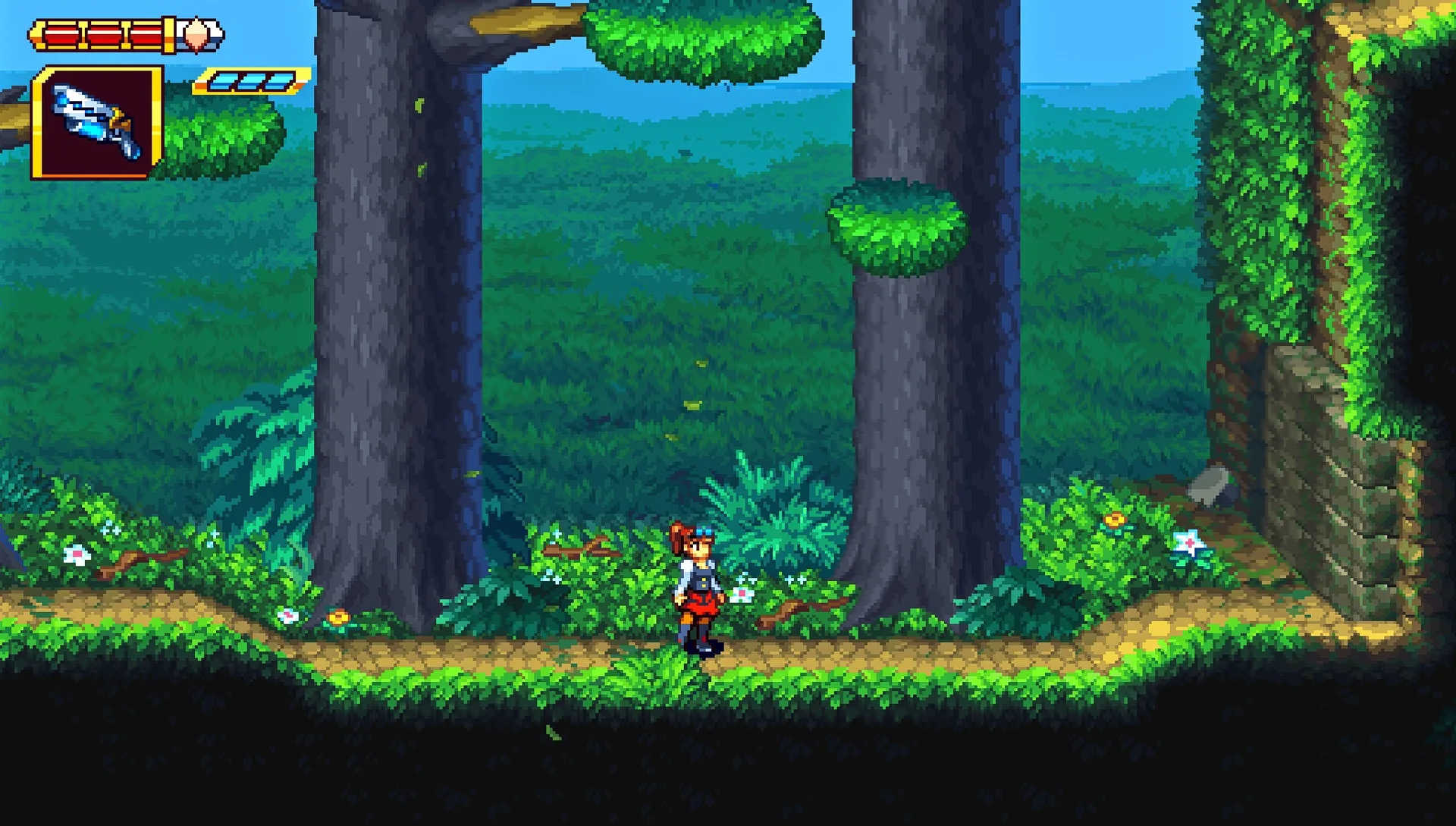 Příběh nás uvádí do role Iris, talentované inženýrky a pilotky vzducholodě, která se po katastrofální havárii ocitá na tajemném ostrově Aspida. První kroky v tomto světě okamžitě prozradí autorovu fascinaci klasikami typu Metal Slug nebo Mega Man. Ručně kreslený pixel art je precizní a prostředí ostrova, od zrezivělých industriálních komplexů až po podivné biomechanické lesy, působí díky drobným animacím neuvěřitelně živě. Iris není jen bezejmenná postava, její inženýrský původ se propisuje do celého herního zážitku. Každá změna vybavení, ať už jde o funkční brnění nebo estetické doplňky, se přímo promítá do jejího modelu. Průzkum ostrova je doprovázen řízným soundtrackem od Johnnyho Stixxe, který skvěle podtrhuje steampunkovou atmosféru plnou páry a oleje.