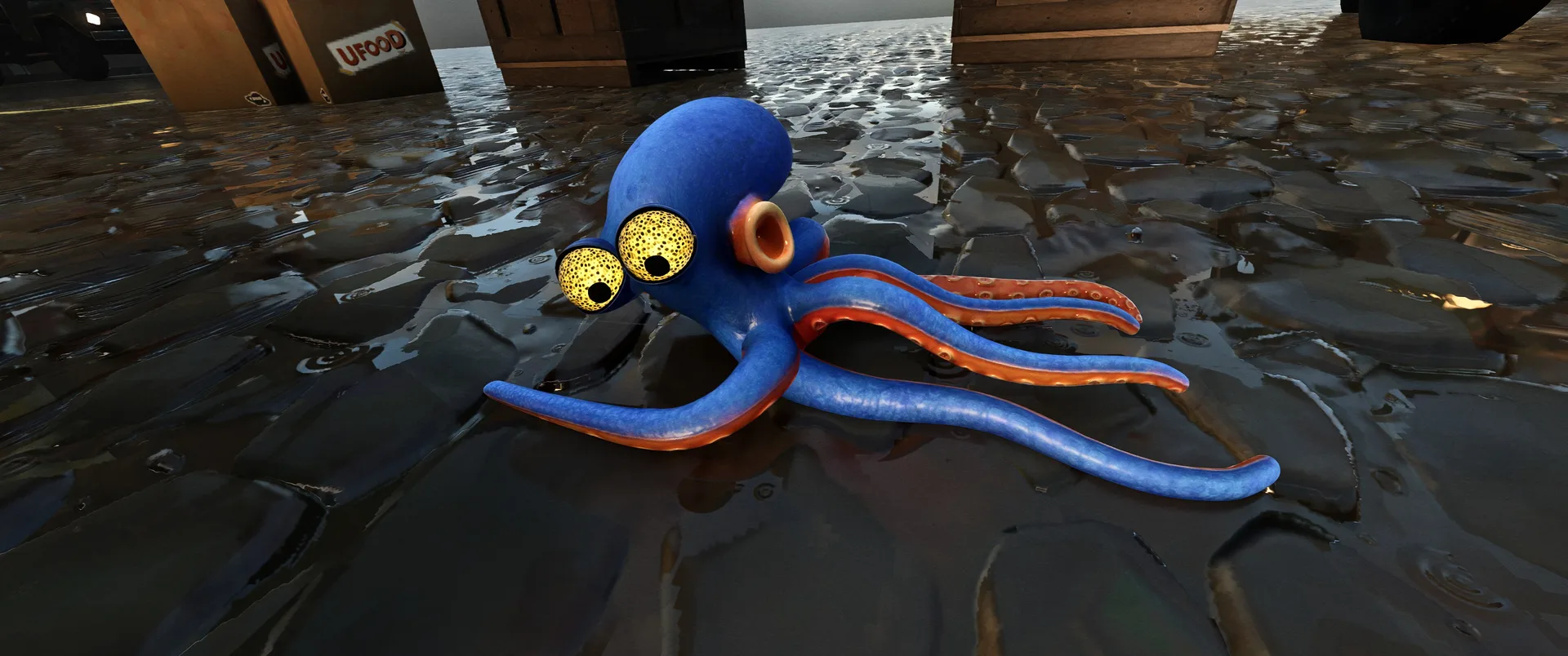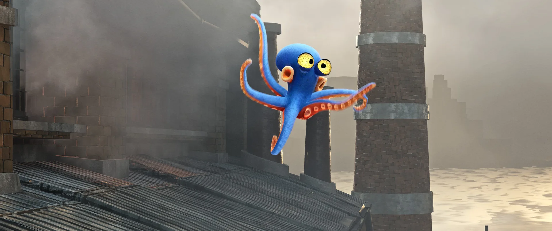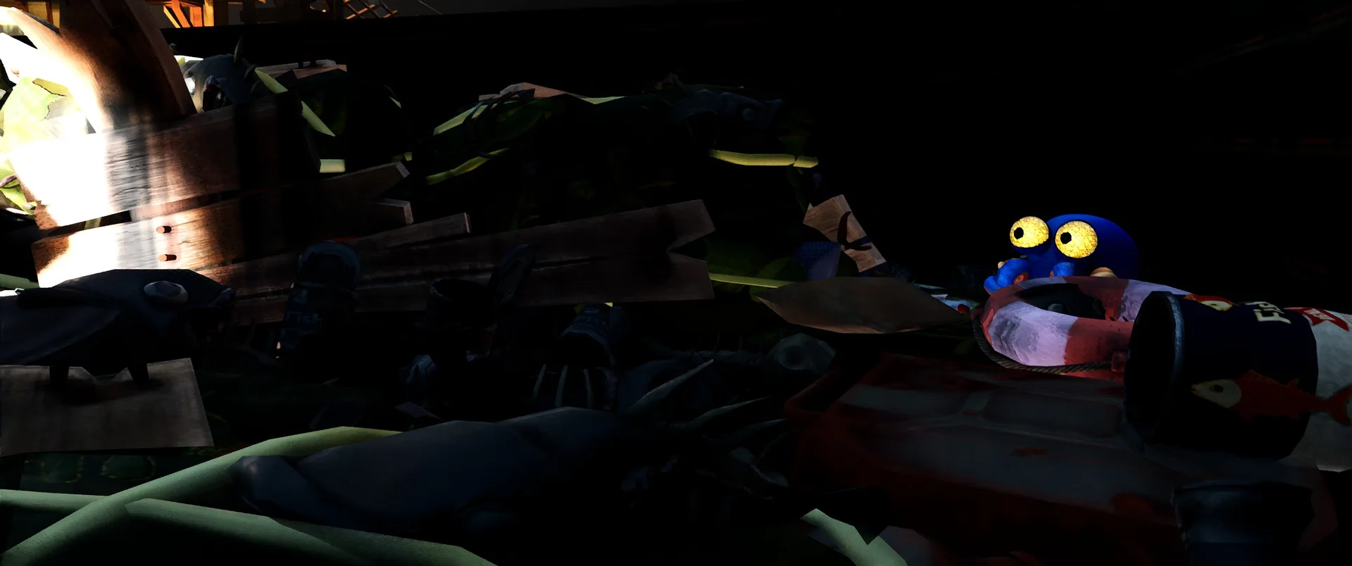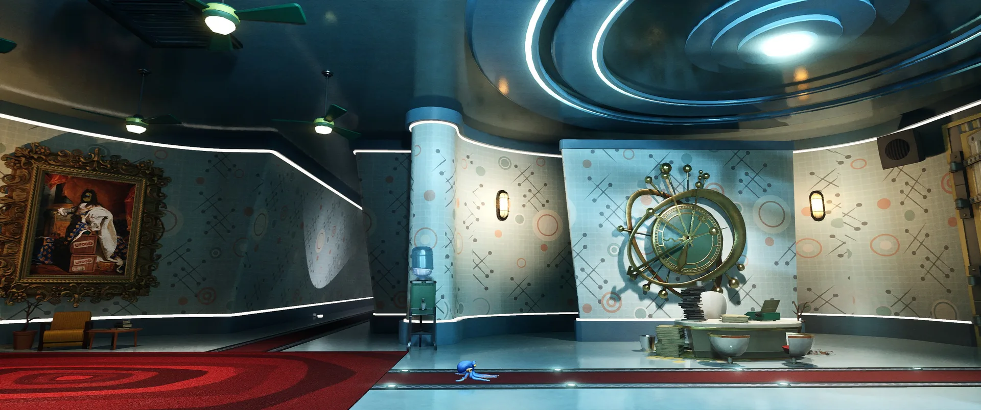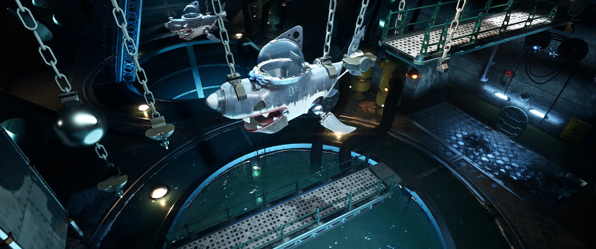 Hra nás hází do role Darwina, chobotnice, která rozhodně nepatří na talíř. Úvodní expozice vás rychle seznámí s krutou realitou, Darwin byl vytržen, ze svého přirozeného domova v korálových útesech a uvězněn v hypermoderním, sterilním a dosti děsivém komplexu společnosti UFOOD INC. Tato korporace se pod rouškou řešení světového hladu věnuje genetickým modifikacím, které hranice etiky nechaly dávno za sebou. Laboratoře nejsou jen prázdné kulisy, jsou plné náznáků o tom, co se zde skutečně děje. Od podivných vzorků v kádích, až po znepokojivé poznámky na nástěnkách, kterou dokreslují už tak mrazivou atmosféru místa. Co je na hře skutečně fascinující, je způsob vyprávění. Nenajdete zde žádná dialogová okna, ani otravné textové tutoriály, které by vás neustále vytrhávaly z imerze. Vše se dozvídate přes "environmental storytelling". Vývojáři zde odvedli mistrovskou práci v naraci skrze detaily - pohozené dokumenty, výrazy v tvářích vědců, nebo postupně se měnící architektura komplexu od nablýskaných kanceláří až po špinavé technické zázemí plné rezavého potrubí. Darwinovy emoce jsou navíc díky špičkové animaci naprosto čitelné. Vidíte jeho autentický strach, když se kolem proplíží těžkopádný strážný robot, i jeho až dětsky čisté nadšení, když objeví cestu ven z klaustrofobní šachty.