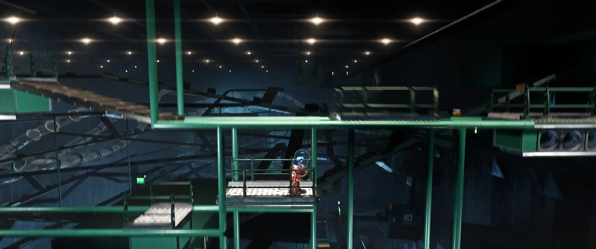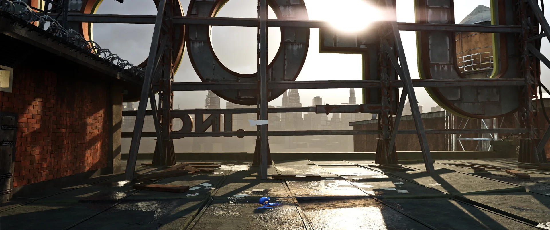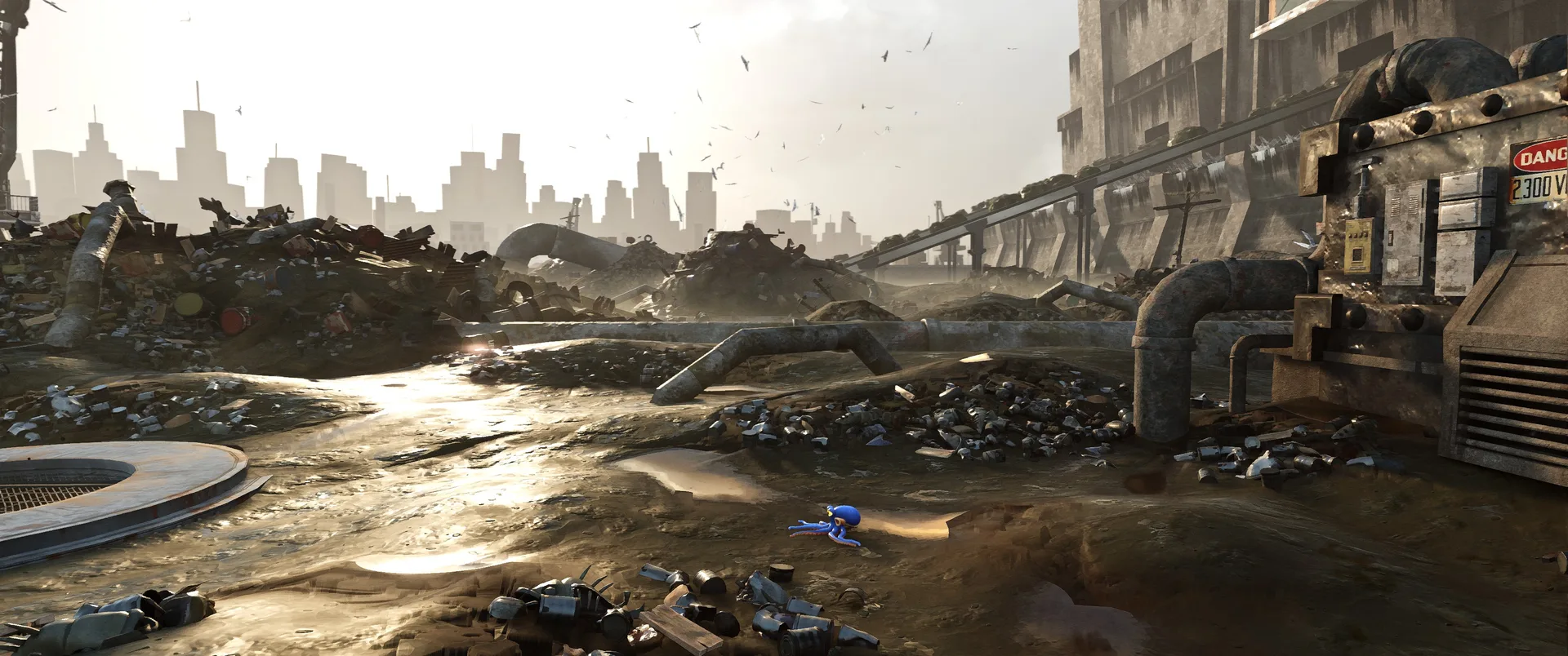 Darwin’s Paradox ! není jen další nezávislou hrou s pěknou grafikou, je to v podstatě interaktivní animovaný film té nejvyšší kvality. Vývojáři se nespokojili s pouhou stylizací, ale dotáhli vizuální stránku do extrému, který v žánru plošinovek nemá obdoby. Každý kout komplexu UFOOD INC. je přeplněný detaily, které vyprávějí svůj vlastní mikropříběh. V koutech technických šachet se realisticky víří prach v kuželech světla a tekutiny, se kterými Darwin přichází do styku, mají neuvěřitelnou viskozitu a lom světla. Nejpůsobivější je práce s materiály. Darwinovo tělo reaguje na okolí s fascinující přesností, vidíte, jak se jeho kůže realisticky leskne podle toho, zda je zrovna mokrý, nebo se maskuje na drsném betonu. Vše doplňují špičkové animace. Darwinův pohyb je díky procedurálnímu systému naprosto plynulý, jeho chapadla se organicky přizpůsobují nerovnostem terénu a každý jeho pohyb působí živě, nikoliv jako předem naprogramovaná smyčka. Výsledkem je vizuální soudržnost, která dává zapomenout, že ovládáte digitální chobotnici, a vtahuje vás do děje čistě skrze to, co vidíte na obrazovce.