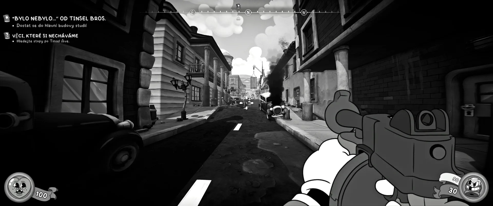 To, co dělá MOUSE tak návykovou záležitostí, je její gunplay, který v sobě nese dravou DNA moderního Doomu. Hratelnost je postavená na agresivitě, neustálém pohybu a brutální palebné síle. Každá zbraň po vylepšení získá alternativní režim střelby, jenž zcela mění taktiku boje v souvislém rytmu. Absolutní klasikou noir žánru je zde James Gun, jedná se o Tommy Gun, který v alternativním režimu umožňuje chirurgicky přesnější eliminaci. Pokud dáváte přednost kreslené kreativitě, je tu Turpentine Gun, jenž v alternativním módu nabízí unikátní způsob, jak nepřátele definitivně vymazat z existence. Arzenál pak doplňuje brutální raketomet, který po upgradech dokáže v Mouseburgu rozpoutat naprosté vizuální i herní peklo. Výběr nástrojů zkázy je přitom mnohem širší než jen zmíněné trio. Arzenál obsahuje úctyhodnou řádku zbraní pro každou situaci. Samotná střelba má neskutečnou váhu, zpětný ráz vám v rukách doslova kope a každá trefa do nepřítele doprovázená bleskovou odezvou okolí připomíná tu nejlepší old-school řezničinu v moderním kabátě. Právě tahle dynamika je důvodem, proč vás souboje neomrzí ani po deseti hodinách, i když pro hardcore FPS veterány může být hra i na nejvyšší úroveň místy až příliš milosrdná, což je druhý drobný zápor na jinak skvělém zážitku.