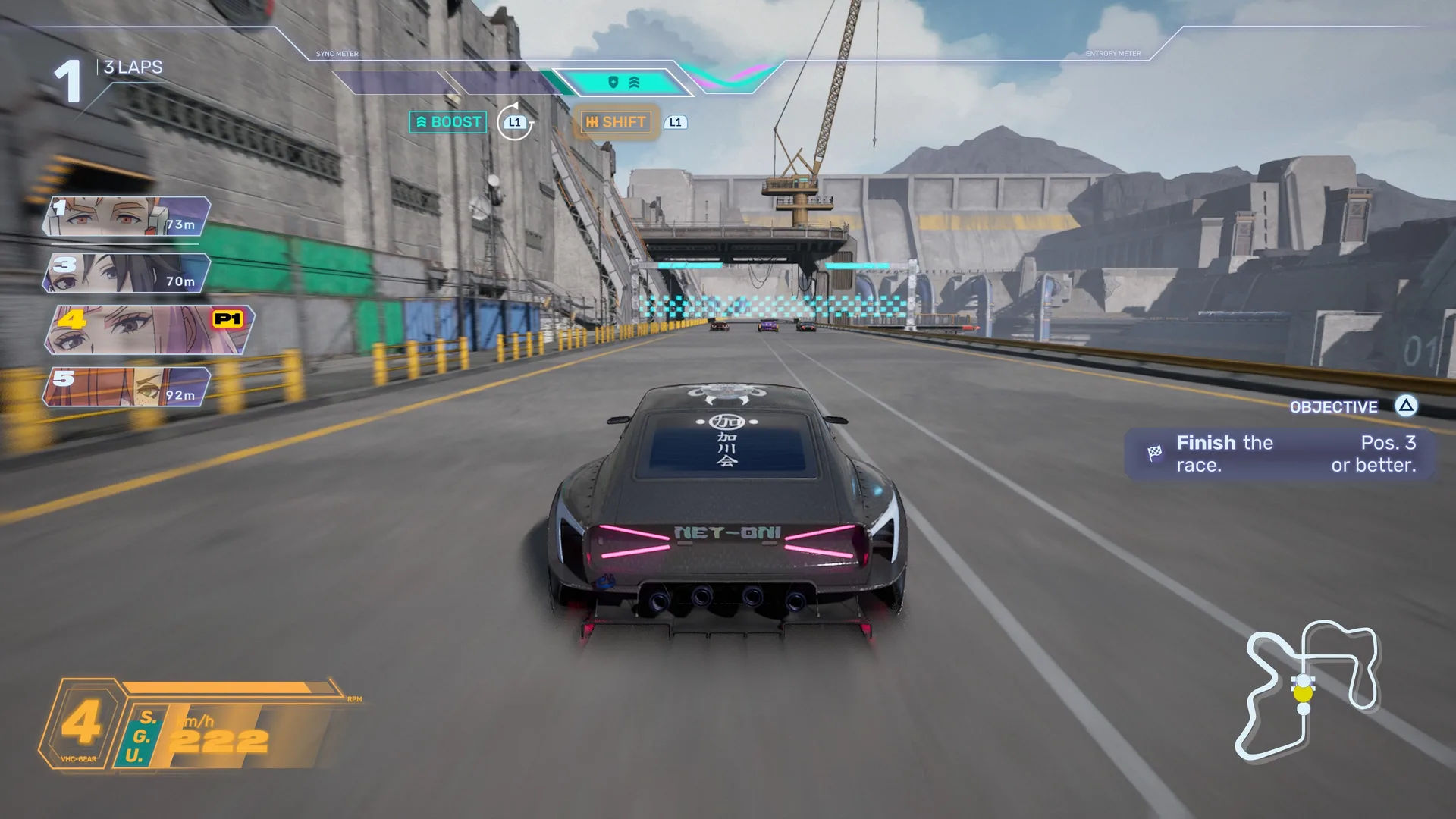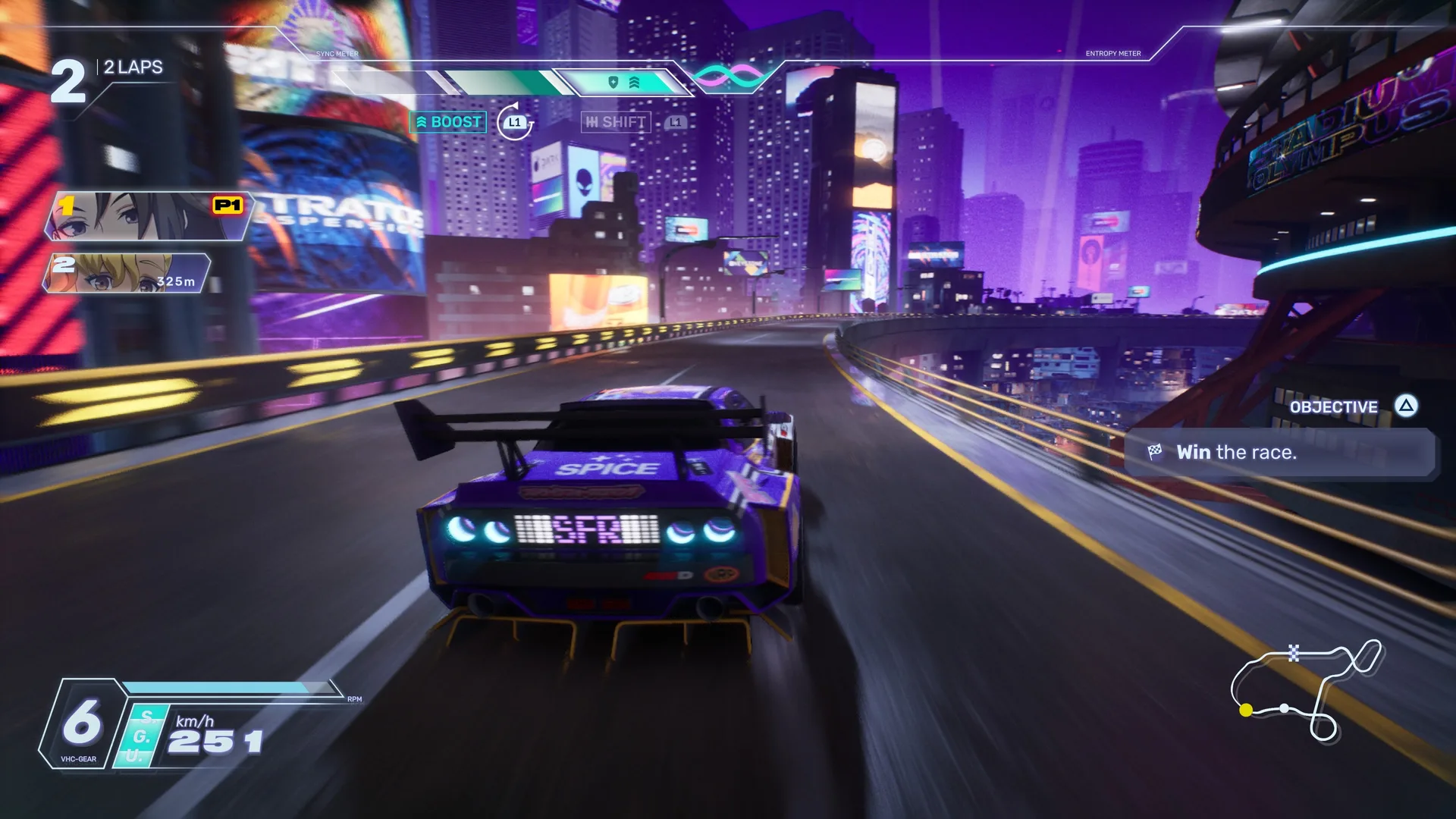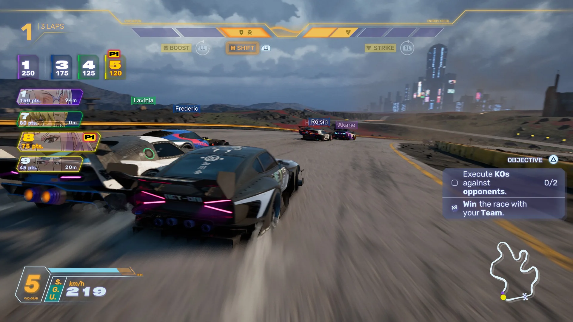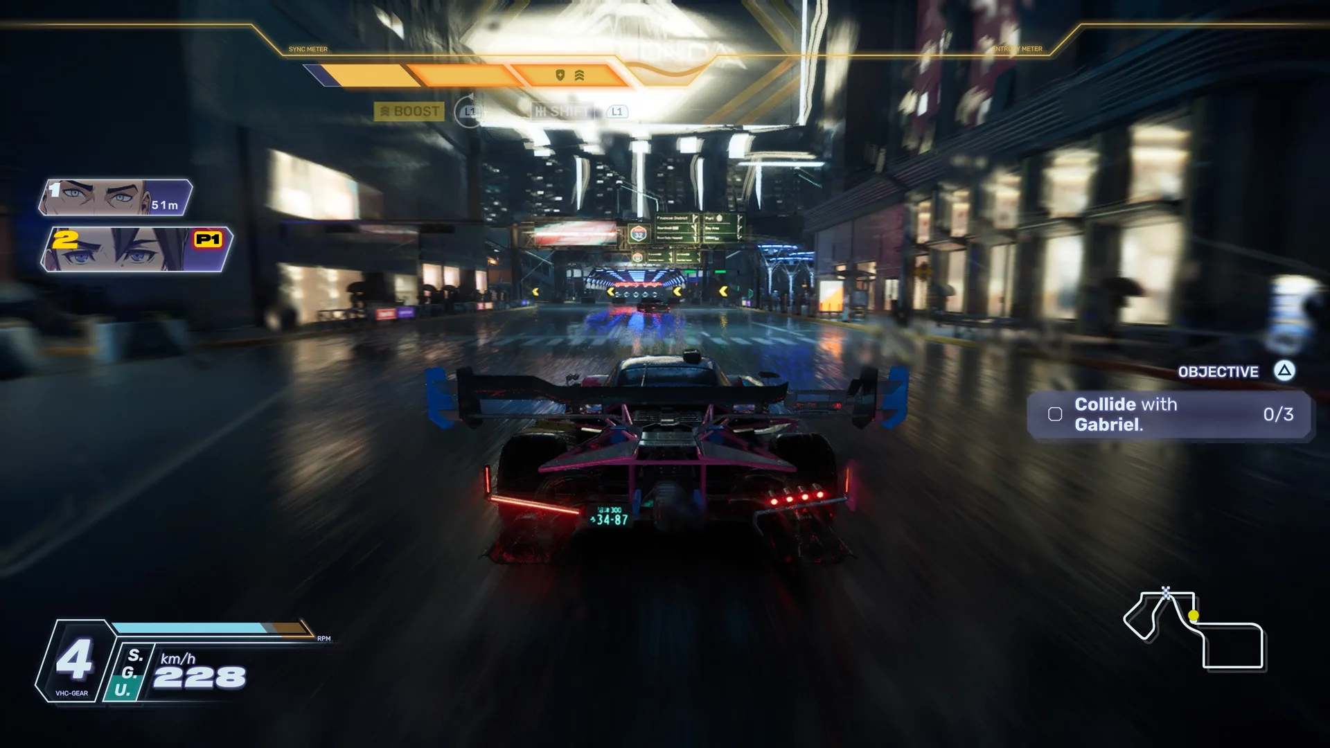 Turnaj The Tournament je totiž domovem různorodých frakcí, jejichž motivace jsou stejně odlišné jako jejich vozové parky. Potkáte zde například tým Green Reapers, tvořený bývalými vojáky pod vedením Hiroshiho Jacksona, kteří v turnaji vidí jedinou šanci na pomstu za smrt svého mentora, jehož vražda je s turnajem přímo spojená. Zcela jinou energii do závodů vnáší Strike Force Romanda, kdysi slavná dívčí idol skupina, která se znovu sjednotila, aby pod rouškou adrenalinových závodů vypátrala pravdu o zmizení jedné ze svých členek, jež byla v Neo Rey naposledy spatřena. Tuto směsici doplňuje cynická Anaconda Corp, zastupující zájmy zkorumpované megakorporace, pro niž jsou závody jen dalším nástrojem k upevnění totální moci nad městem a k umlčení nepohodlných svědků. Právě tento propletenec osobních tragédií a korporátních her dělá z kampaně něco víc než jen sled závodů, je to interaktivní anime, kde má každé vítězství svou narativní váhu a každá postava má v tomto nebezpečném světě co ztratit, přičemž tyto tři frakce rozhodně nejsou jedinými hráči, kteří do špinavých ulic Neo Rey vyslali své zástupce. K celkové pohlcující atmosféře města zásadně přispívá také naprosto fenomenální soundtrack. Jde o úderný mix agresivního synthwavu a techna, který v uších duní přesně v rytmu zběsilé akce a dodává závodům ten správný kyberpunkový říz.