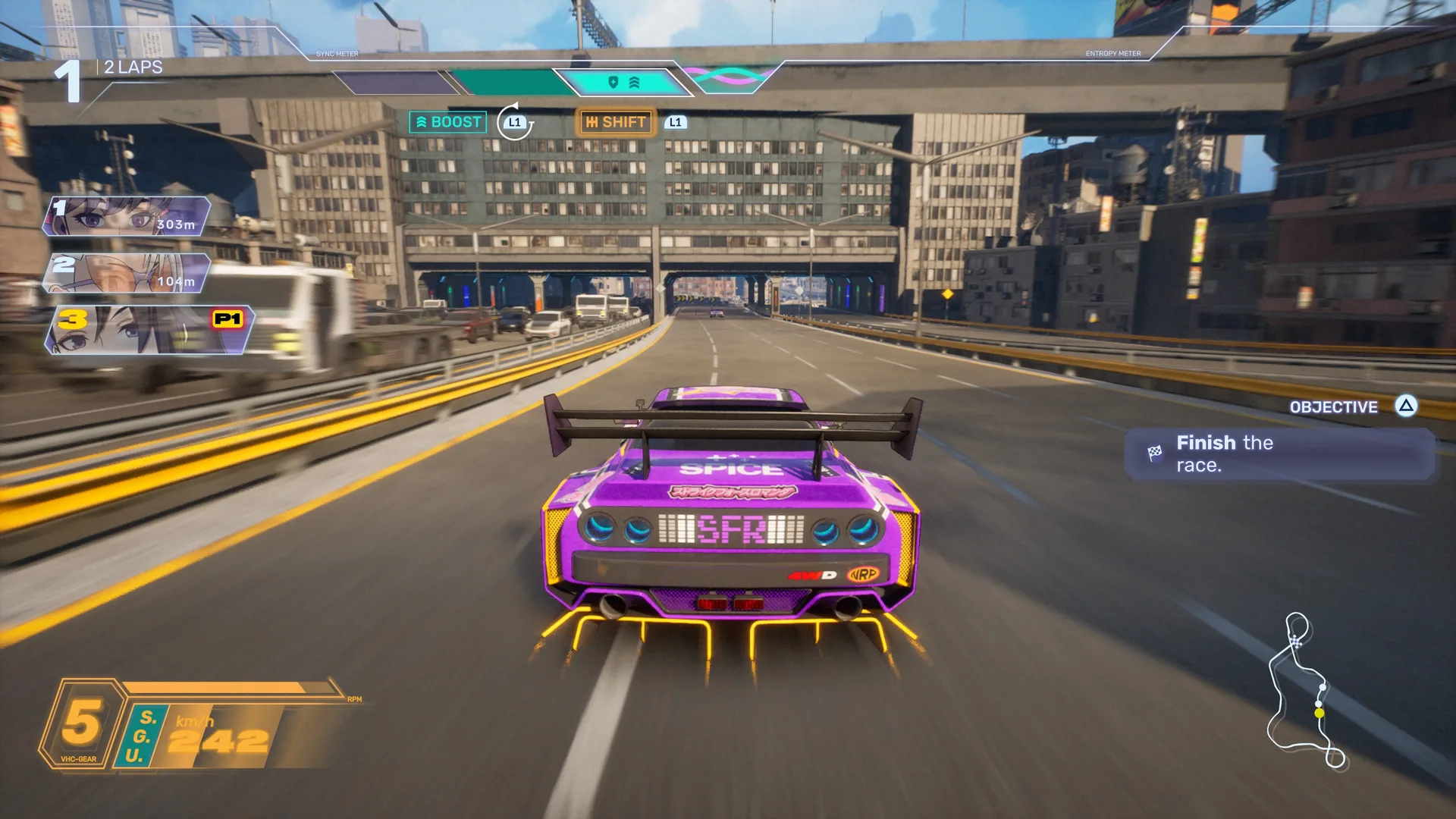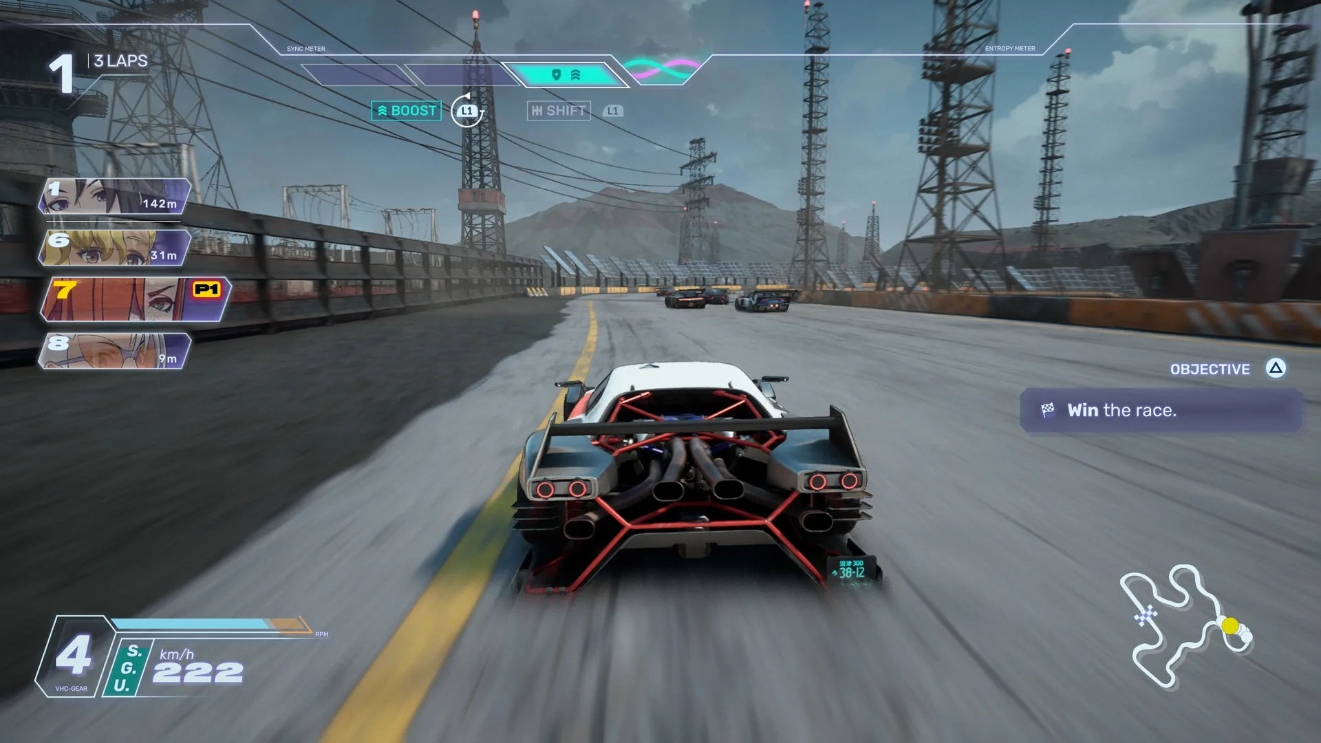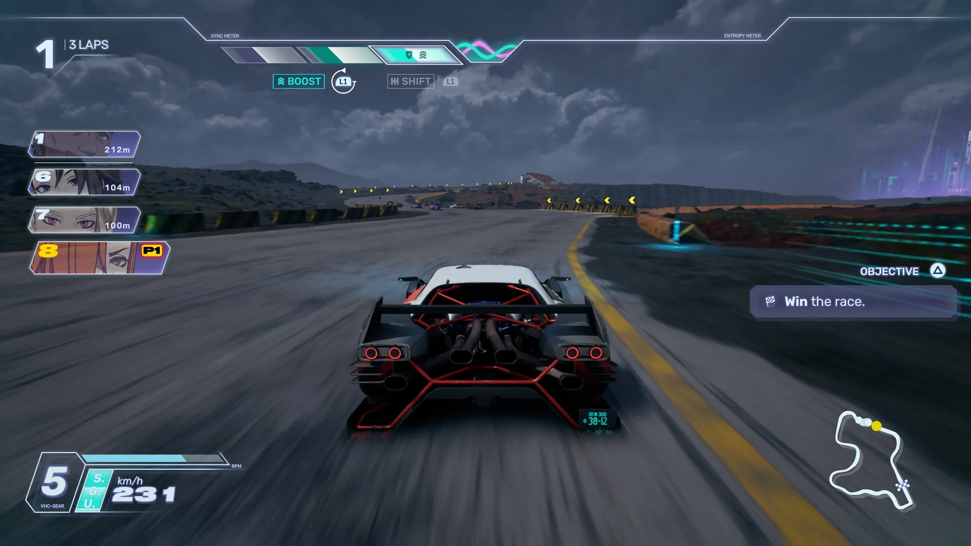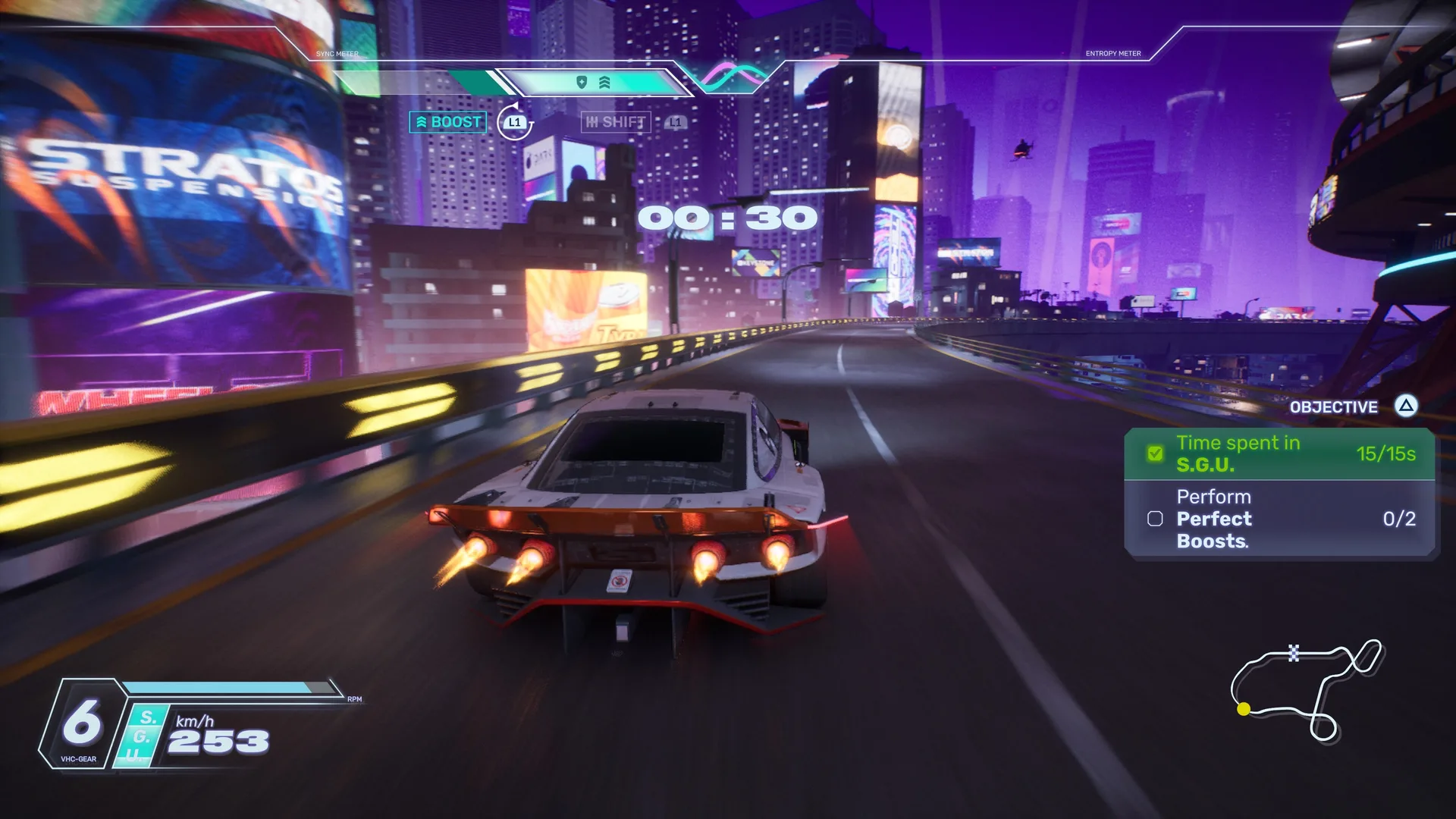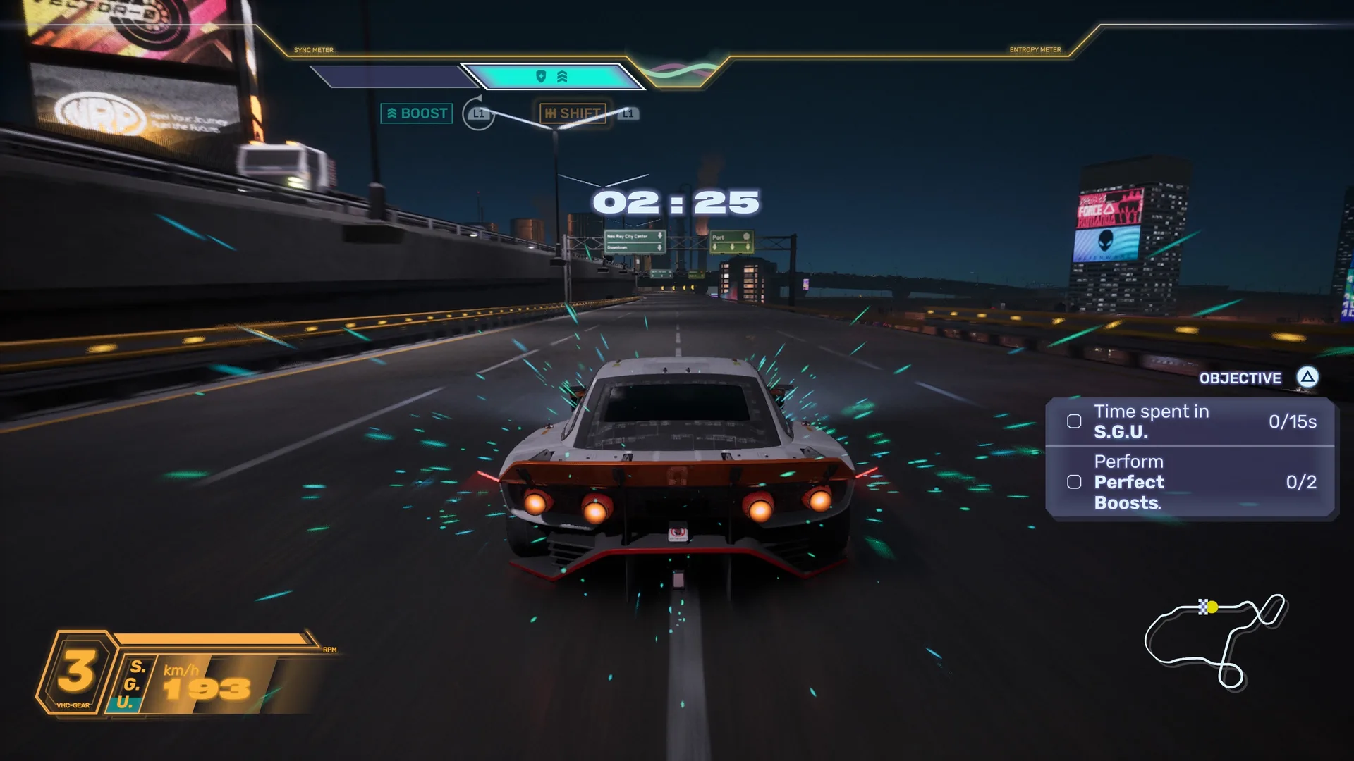 To, co titul vyvyšuje nad ostatní arkády, je unikátní správa energie v rámci systému ECHO. Celý systém stojí na symbióze dvou proudů, které musíte neustále vyvažovat, aby vaše jízda byla efektivní. Modrá energie Sync se buduje čistou jízdou, driftováním a mechanikou přesného přeřazení v ideálních otáčkách. Sync využíváte pro krátké boosty nebo aktivaci defenzivního štítu proti výpadům soupeřů. Používáním Syncu však jako vedlejší produkt generujete oranžovou energii Entropy, která je palivem pro čistou destrukci. Ta vám umožňuje provést manévr Strike, prudký boční náraz, který dokáže soupeře vyřadit z ideální stopy. Pro nejodvážnější je tu pak režim Overdrive, který obě energie kombinuje do brutálního výkonu a nezastavitelnosti, ovšem s fatální nevýhodou - v tomto stavu stačí sebemenší kontakt se svodidly a váš stroj okamžitě exploduje. Tento management zdrojů dodává každému závodu neuvěřitelné taktické napětí.