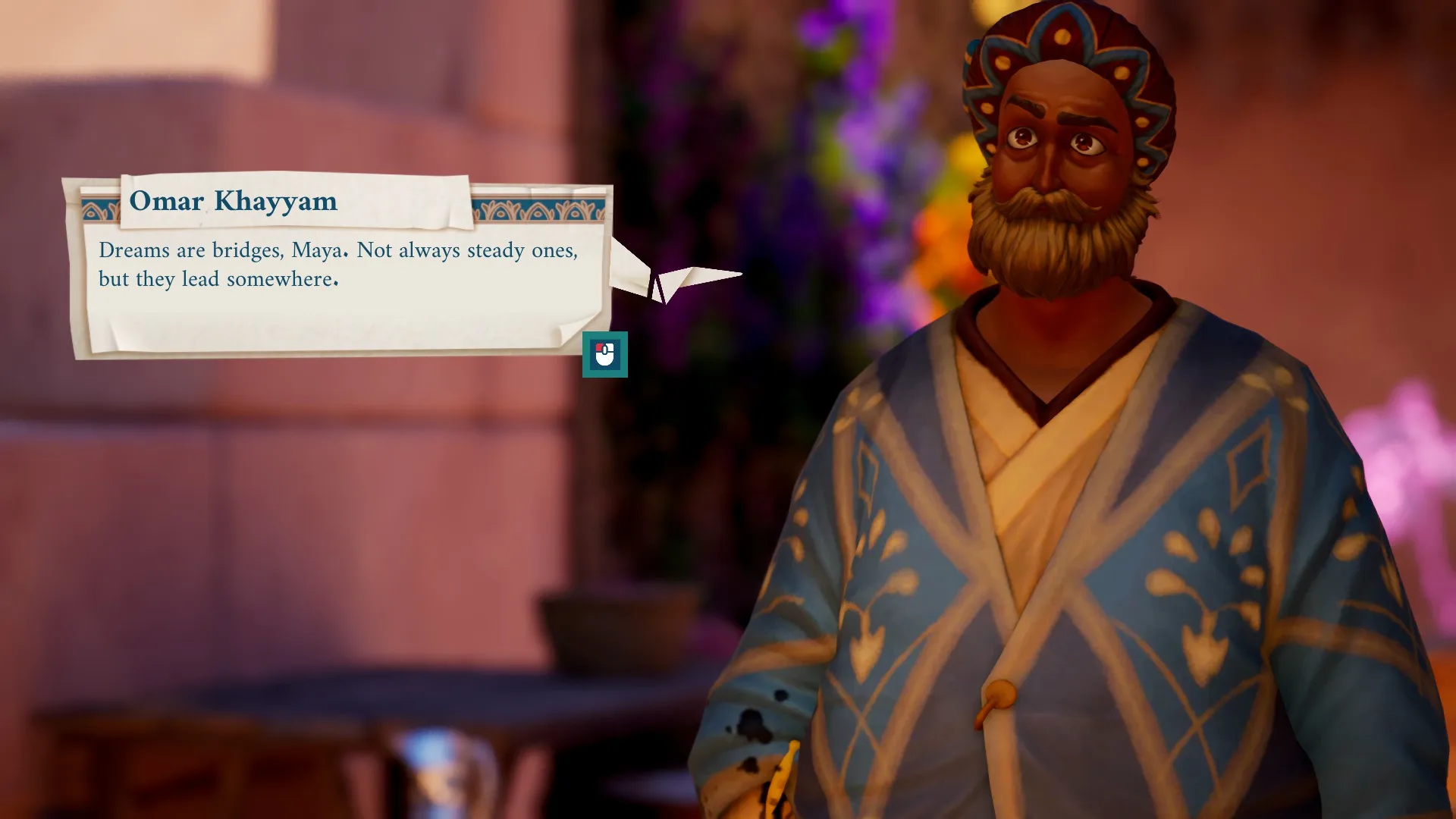 Hlavnou hrdinkou je štrnásťročná Maya, ktorá nedávno prišla o svojho otca Abdullaha. Jeho smrť ju hlboko zasiahla a odpovede na svoje otázky možno nájde práve v Dome Hikmah. V jeho komnatách sa ukrýva množstvo múdrostí a navyše tu pôsobili aj školitelia, ktorí spolupracovali s jej otcom. Vedúca Fatima ju postupne vysiela za každým z nich s dôležitými správami, pričom sa zároveň učí pracovať so zariadením, ktoré po jej otcovi zostalo – takzvaným kľúčom. Ten dokáže meniť vlastnosti predmetov a stáva sa hlavným nástrojom na prekonávanie prekážok.