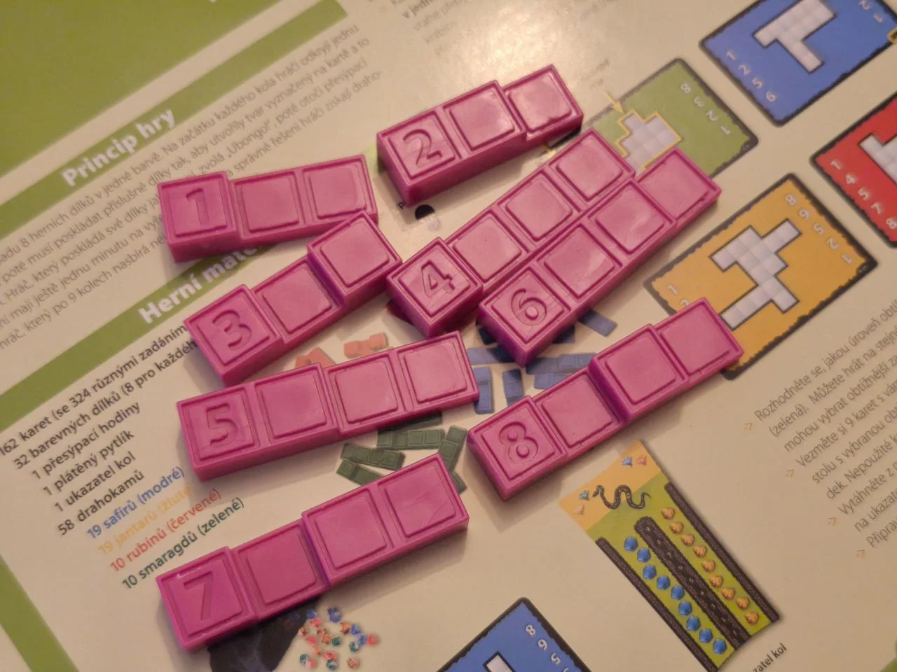 Rovnako ako v pôvodnom Ubongo! si môžete pravidlá trochu upraviť. Každý hráč, čo úspešne splní hlavolam, si vyberá náhodný drahokam z vrecúška. Túto fázu tak môžete opäť preskočiť a víťaz sa určí len na základe najväčšieho počtu zafírov a jantárov. Vyskúšať si môžete aj režim pre jedného hráča. Ku nemu budete opäť potrebovať aj stopky a budete súperiť s časom o to, koľko hlavolamov sa vám za určitý čas podarí úspešne vyriešiť, čo sa budete snažiť neustále zdokonaľovať. V rámci tohto by som však povedal, že pôvodná 2D verzia je v tomto podľa mňa viac univerzálnejšia. Skladať tieto prakticky 3D komponenty do seba nie je úplne najšťastnejším nápadom hlavne pre dôchodcov, ktorým sa môžu triasť ruky a jednotlivé dieliky občas predsa len do seba zapadajú trošku ťažšie.