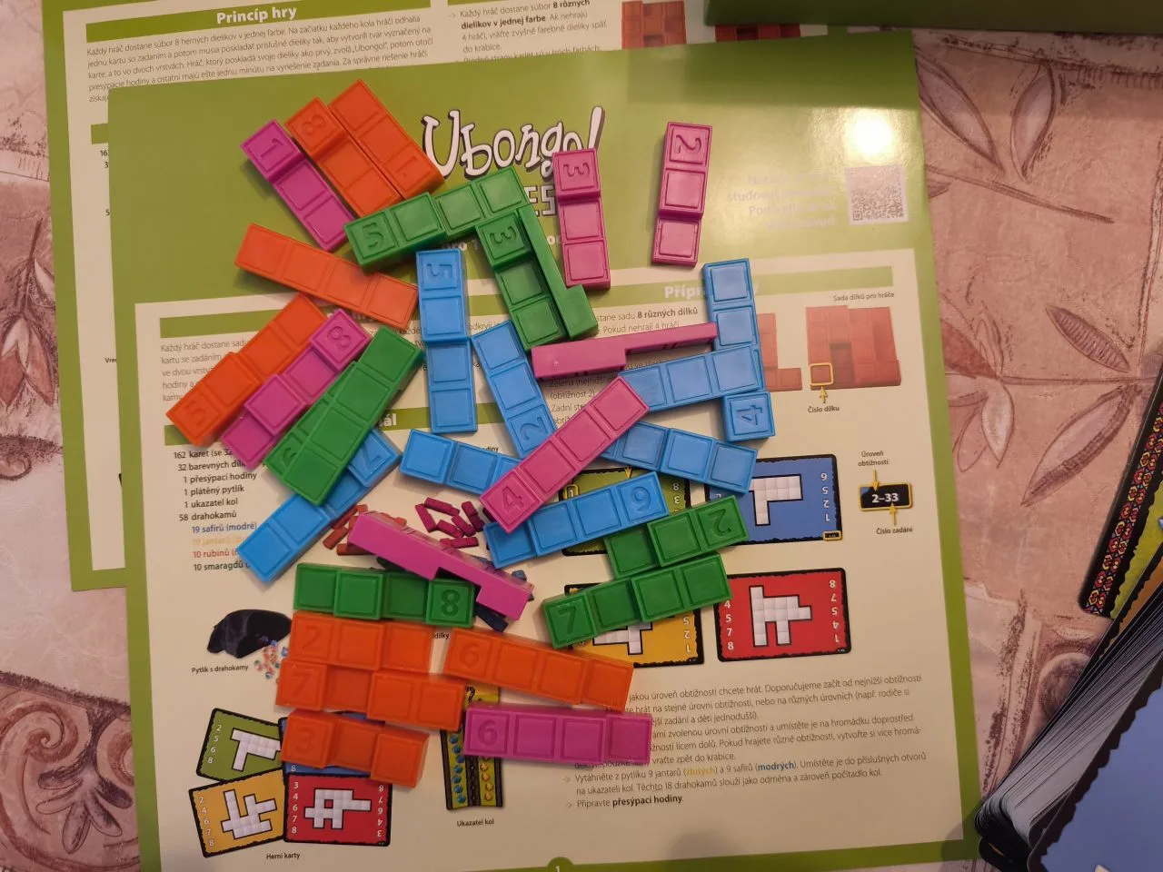 Pravidlá prešli drobnými úpravami, takže ak si myslíte, že Ubongo! ovládate do bodky, radšej si ich v rýchlosti predsa len prečítajte. Pri pravidlách ma však najviac prekvapilo, že napriek svojej krátkosti obsahujú niekoľko kontextových a gramatických chýb v slovenčine, čo trochu zamrzí. Napriek tomu sú však jasne a jednoducho napísané. Pozrime sa však na zmeny oproti pôvodnému Ubongo!. Tentokrát sa v každom kole ťahá len jedna karta s hlavolamom, ktorá sa umiestňuje do stredu stola. Takže všetci hráči sa snažia naraz splniť ten istý hlavolam. Prvé partičky môžu byť trošičku náročnejšie, hlavne čo sa týka spájania jednotlivých dielikov. Tie sú plastové a mnohé do seba zapadajú dosť ťažko, takže ak si ich nechcete hneď polámať, bude to chcieť trošku trpezlivosti. Na úvod si tak vyskúšajte prvé jednoduchšie náročnosti a postupne sa presuňte k tých náročnejším. Prvé dve sú však vskutku veľmi jednoduché, takže sa hodia aj pre menšie deti. Samozrejme, chce to určitý cvik. Pri náročnejších hlavolamoch musíte vždy počítať s tým, že ich vyriešenie vám zaberie istý čas. Dovolím si povedať, že prvé dve náročnosti mi prišli jednoduchšie ako v pôvodnom Ubongo!, no pri poslednej sme sa občas aj dosť zapotili.