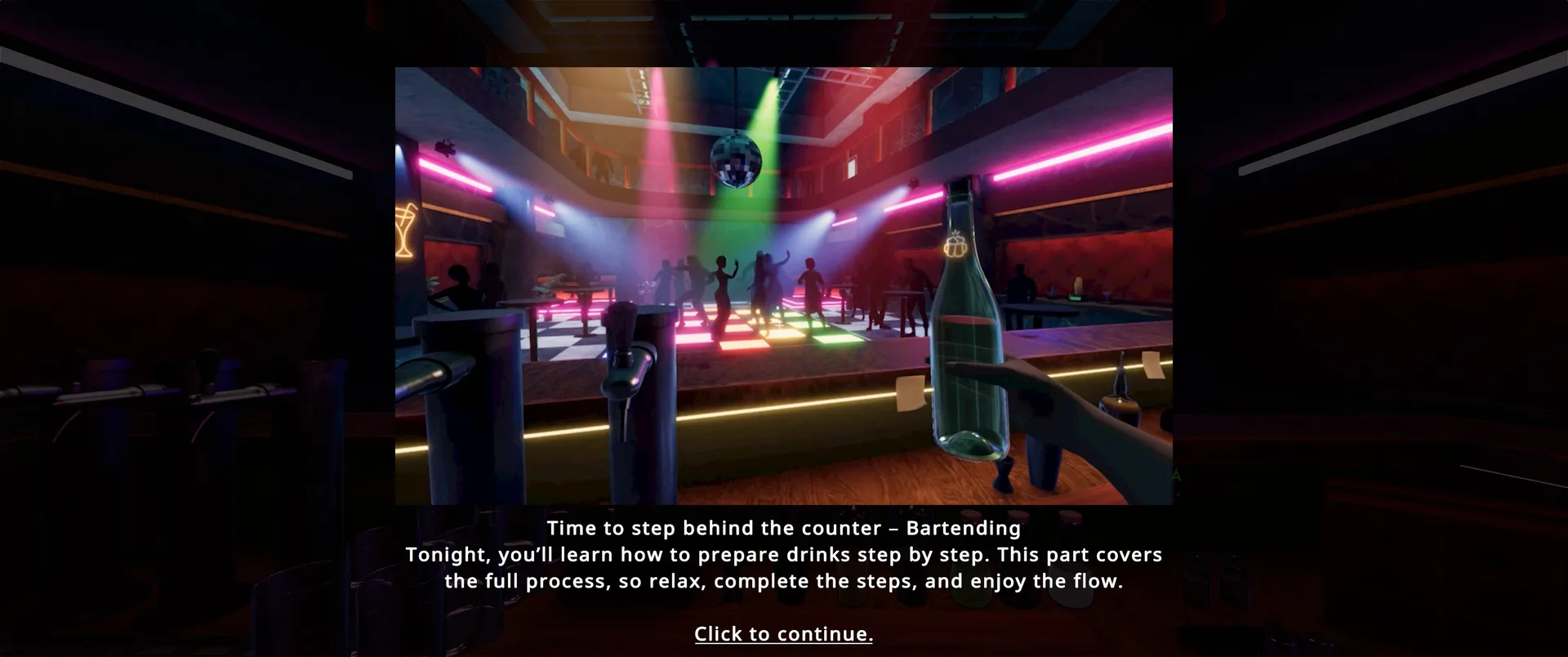 Jádro gameplaye spočívá v obsluhování baru z pohledu první osoby. Stojíte za pultem, před vámi se objevují zákazníci a vy jim mícháte drinky. A tady se dostáváme k prvnímu bodu – míchání drinků. Nečekejte žádné složité postupy s desítkami ingrediencí a přesným odměřováním. Spíš jde o takovou zjednodušenou verzi mixologie, kdy si vyberete správné sklo, nalijete pár lahví a je to. Funguje to svižně a nenásilně, což je pro casual zážitek ideální. Nikdo po vás nechce, abyste byli Tom Cruise z Koktejlu, spíš aby vás to bavilo a nefrustrovalo.
