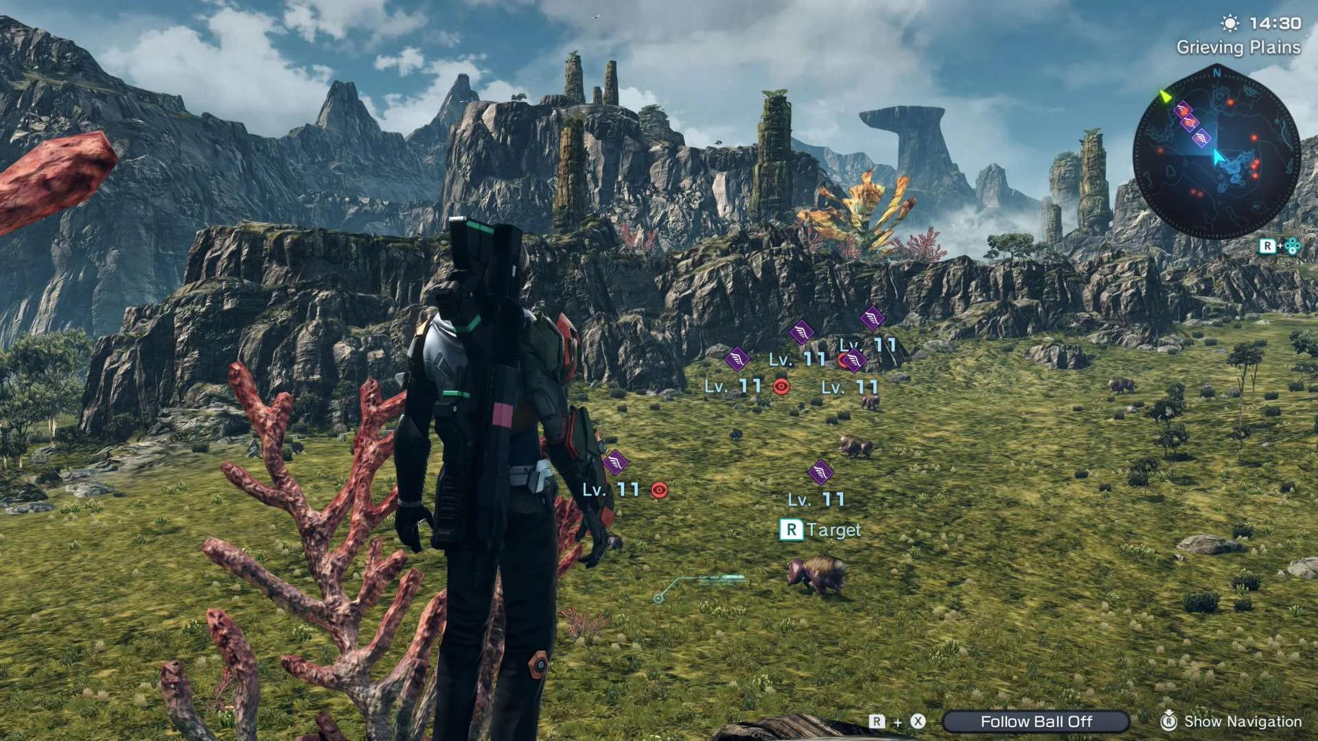Cíl celého tohohle systému je jednoduchý: donutit vás prozkoumat na vlastní pěst co nejvíc kilometrů pečlivě vybudované mimozemské planety. A že je na co pohledět. Za každým kopcem na vás čeká dobrodružství a kamkoliv se podíváte, čekají vás nádherné výhledy na obrovská skalnatá úpatí, do nebe se tyčící impozantní stromy nebo obrovské létající velryby, co si v klidu plují mezi mraky.